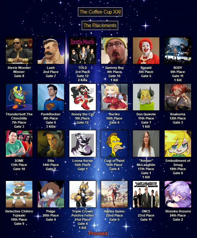 >>79288940The eliminations are just trickling in. One more smashed mouth for the mouth throne.>>79288981Pray harder!