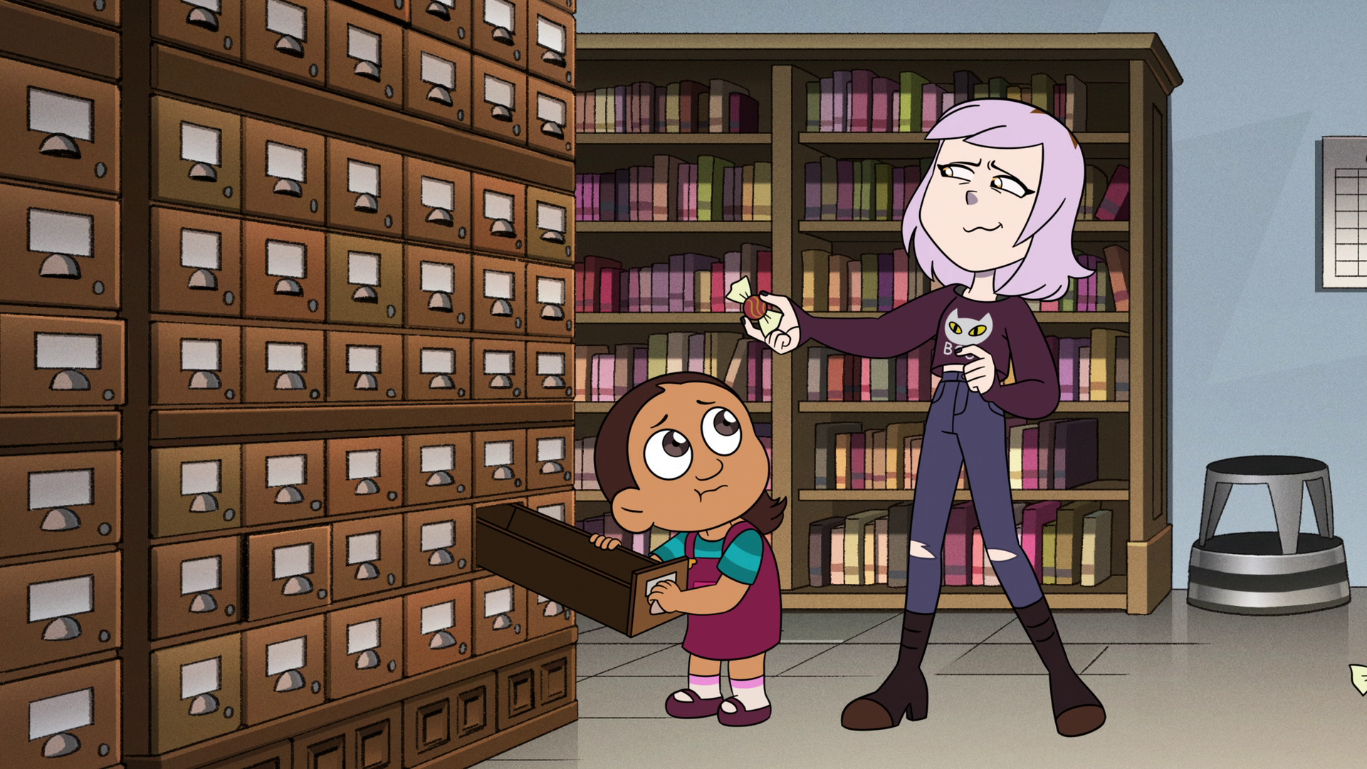 Why does she approach random kids in the library offering them candy while making that face