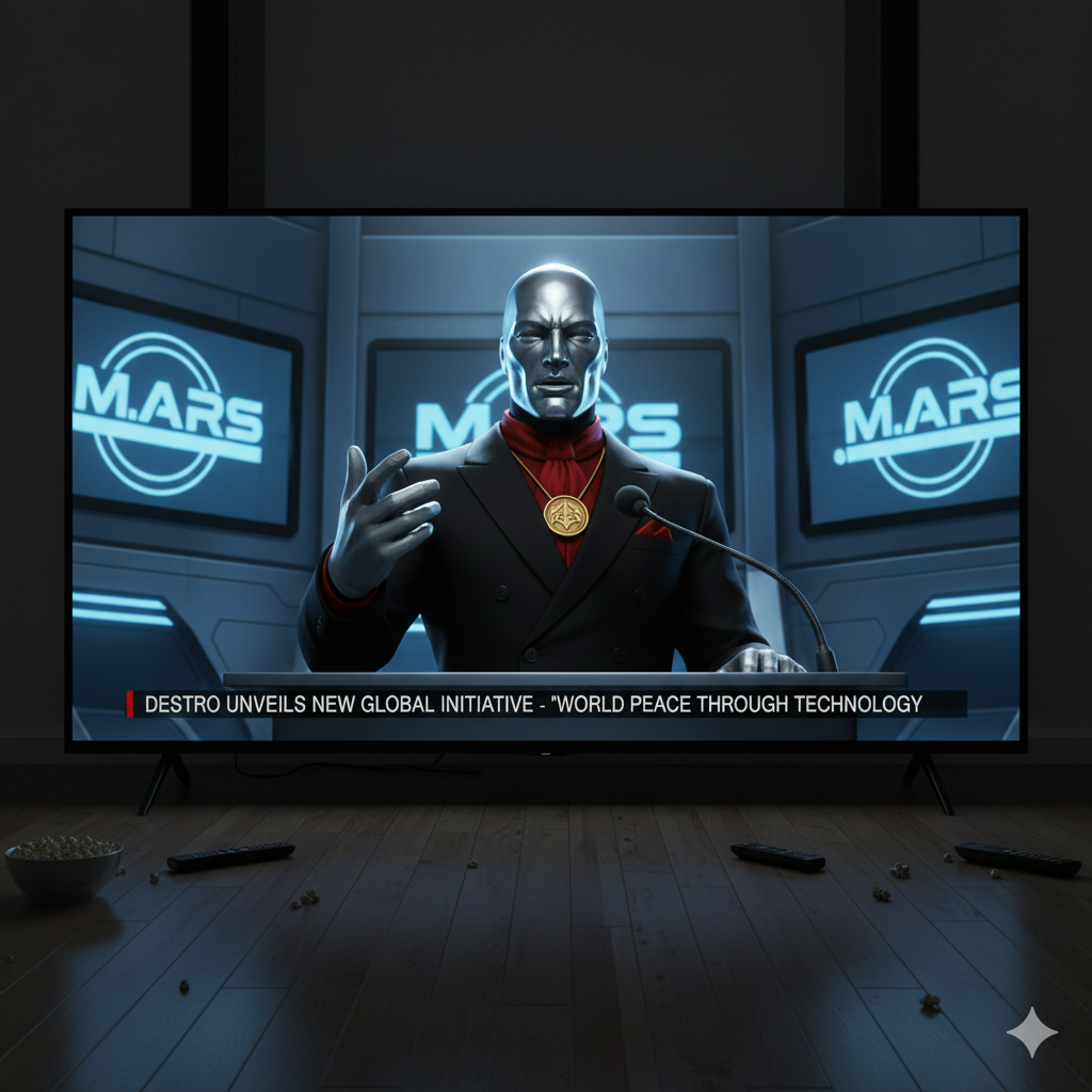 Gemini works and seems to be able to think quite well. All I prompted was "Destro giving speech on TV"