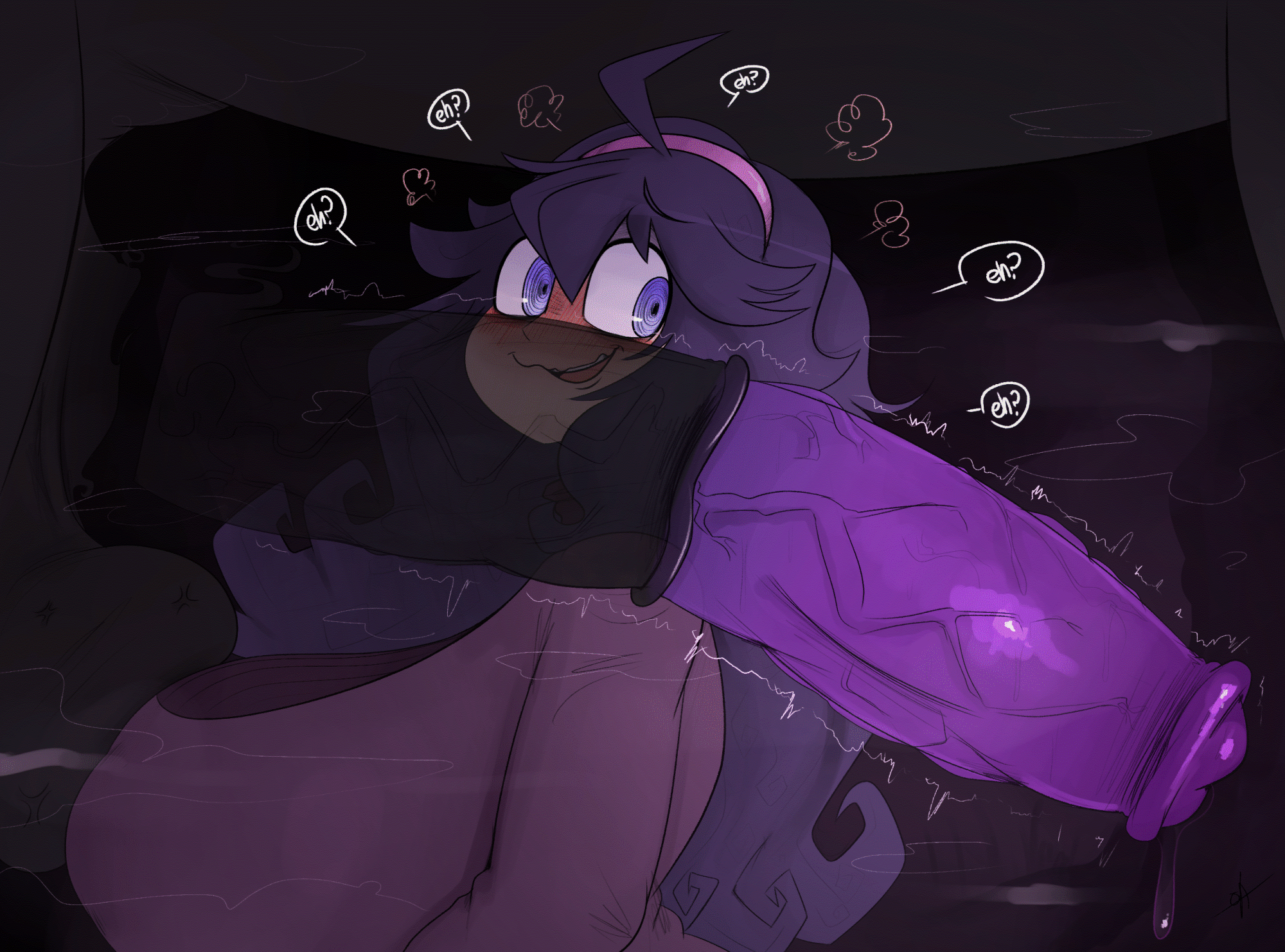 >>79385273Here, a reward. Her elevated senses cause his manly femboy smell to melt her brain <3