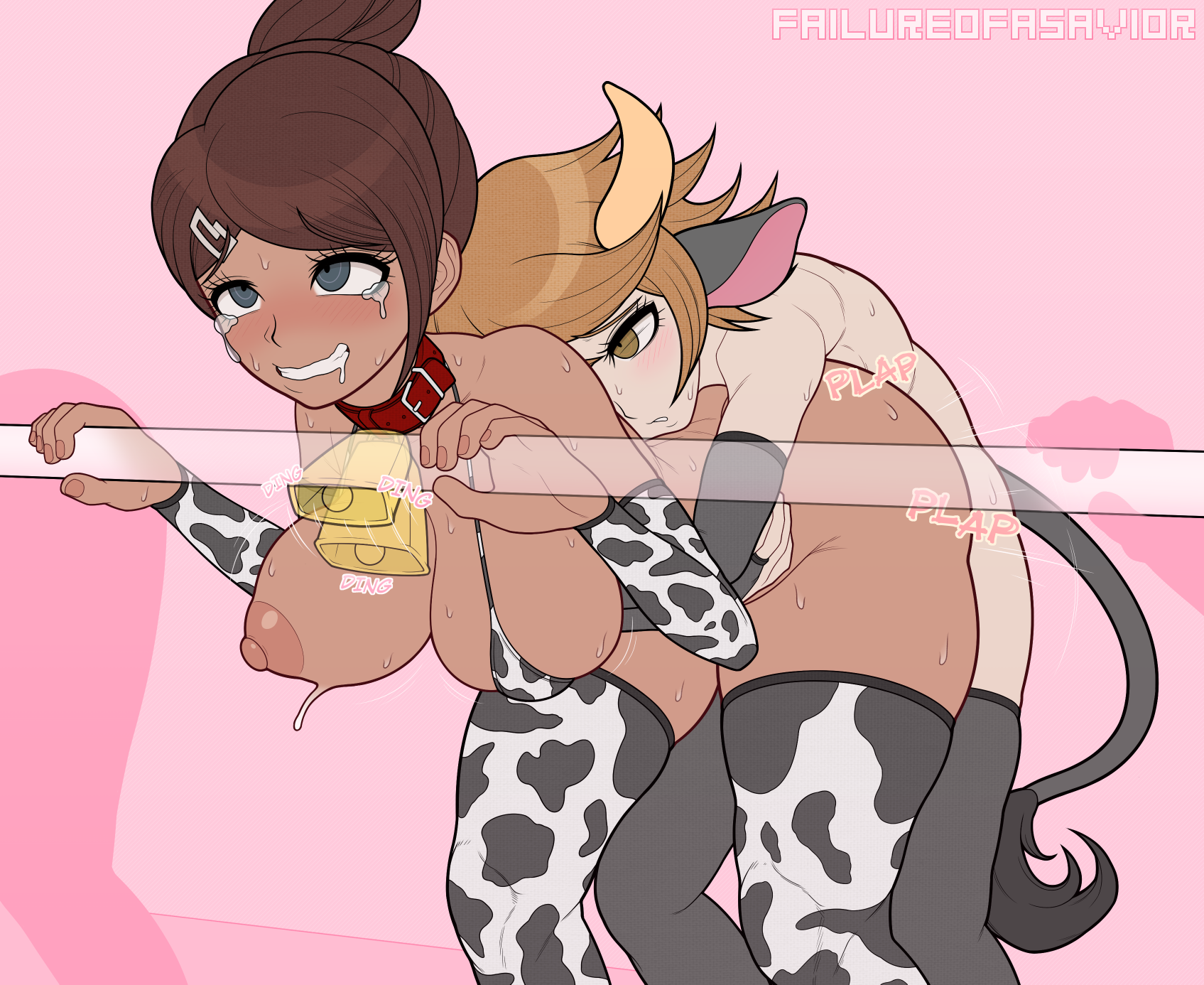 >>79602832Chihiro from dangan and Naoto from persona as cows holding big mugs of milk, give Naoto giant tits and Chihiro a huge cock.