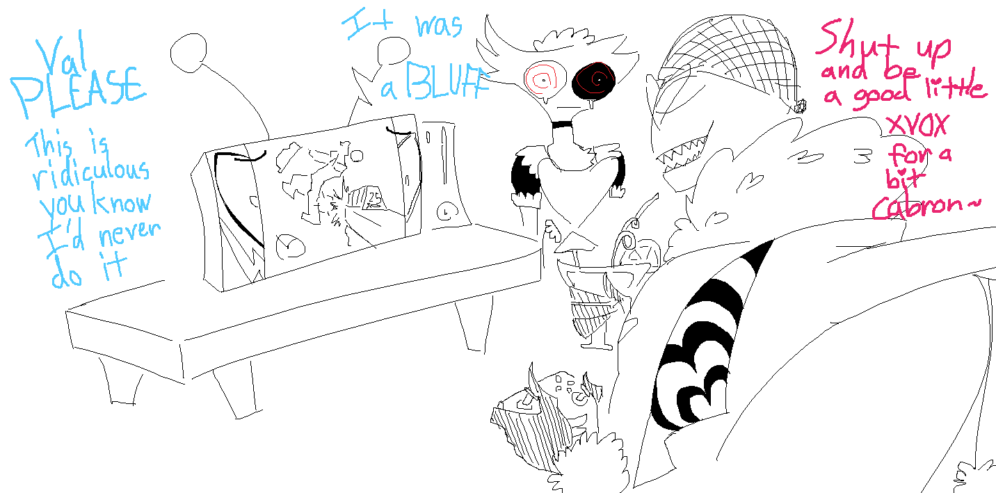 >>79698788>Vox gets the Alastor route>Al rarely ever puts out>Vox is so pent up and obsessed that he instantly gets horny just getting to hold Al>but he will never betray Alastor's trust or consent and is willing to jerk off for however long until Alastor decides to have sex