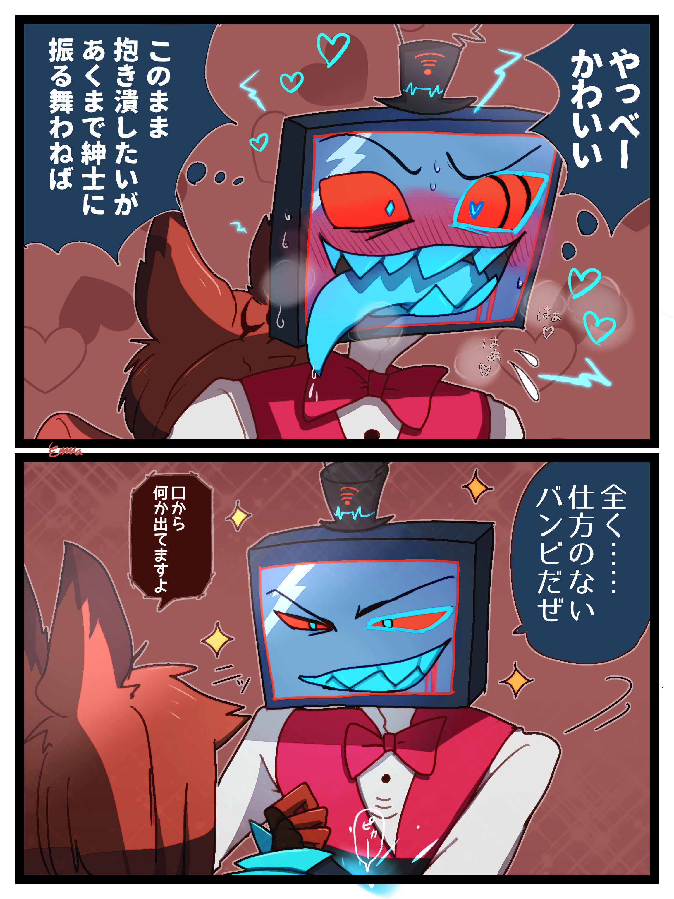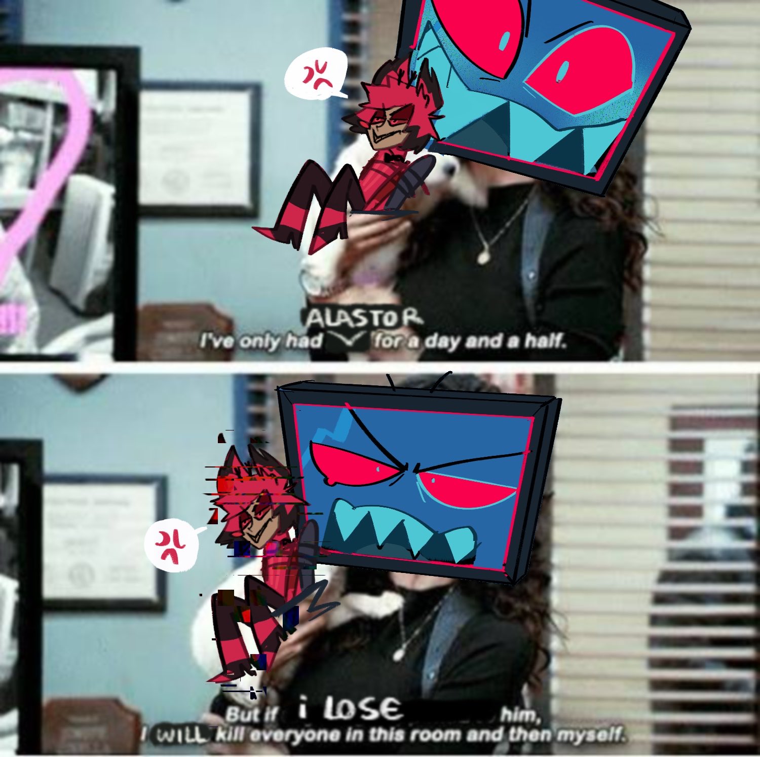 Tv Man EditionPrevious thread: https://desuarchive.org/trash/thread/79695600OP Templatehttps://hazbinhelluvageneral.com/hhg-template//hhg/ website:https://hazbinhelluvageneral.com/>Hazbin HotelHazbin Hotel is the story of Charlie, the princess of Hell, as she pursues her seemingly impossible goal of rehabilitating demons to peacefully reduce overpopulation in her kingdom. She opens a hotel in hopes that patients will be "checking out" into Heaven.Hazbin Hotel Pilot:https://www.youtube.com/watch?v=Zlmswo0S0e0>Helluva BossFollow Blitzo, a classic demon Imp who sets out to run his own small assassin business with his weapons specialist Moxxie, his bruiser Millie, and his receptionist hellhound Loona. Together they attempt to survive each other while running a startup in Hell.Helluva Boss Pilot:https://www.youtube.com/watch?v=OlahNrlcgS4Episode playlist:https://www.youtube.com/playlist?list=PL-uopgYBi65HwiiDR9Y23lomAkGr9mm-SOfficial website:https://www.hazbinhotel.com/Hazbin Hotel & Helluva Boss full episodes & shorts & downloads[NOTE] The moment the Prime versions of HB are released and HH S2 is released it will be uploaded onto this site:https://hazbinhelluvageneral.com/hhg-shows/Previous threads:https://desuarchive.org/trash/search/text/hhg/type/op/results/thread/hhg/ Cytube channel:https://hazbinhelluvageneral.com/hhg-ct-redirect//hhg/ Season 2 leaks:https://hazbinhelluvageneral.com/s2/s2leaks/hhg/ booru (a little dead):https://hhg.booru.org/Psyanon fanfic recordings:https://hazbinhelluvageneral.com/psyanon-recordings//hhg/ fics:https://www.dropbox.com/sh/yt9eyw09rgvo2zw/AAARltoYS1-aW-FYF8aQx4Pja?dl=0https://pastebin.com/u/mrkillwolf666/1https://archiveofourown.org/collections/hhg_fics