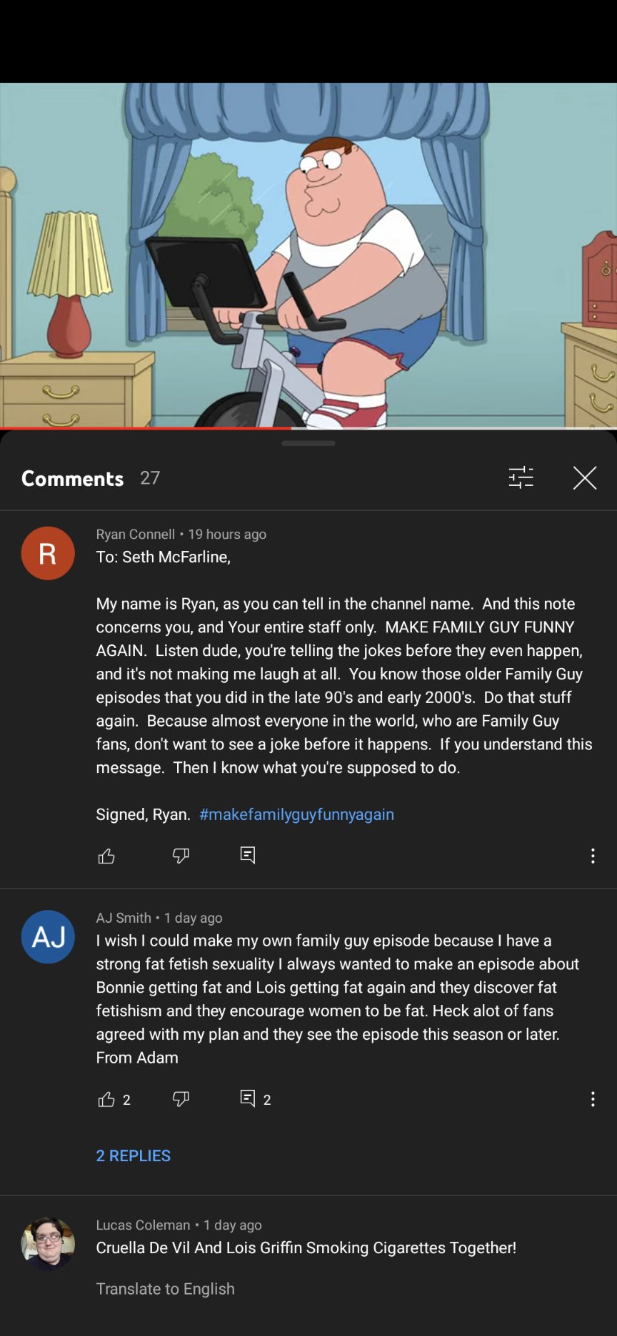 >>79789873Family Guy comments tend to be sub-literate and shallow.