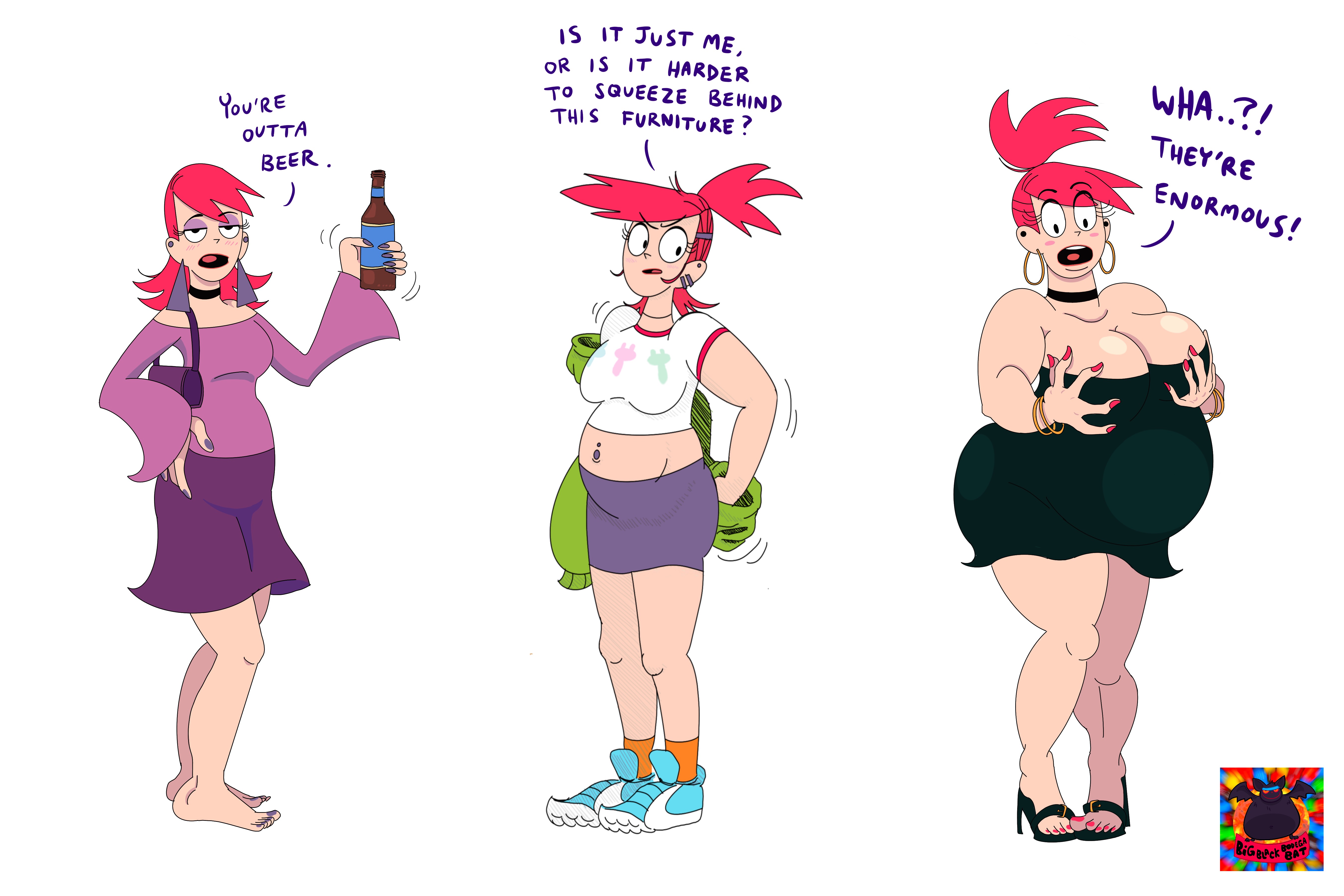 >>79830215Like, the more I think about it the more options appear. You want Frankie to be the butt of the joke? Sure, half the cast are assholes, have Duchess call her a hideous whale and Mr. Heriman tell her to diet and Bloo be Bloo making fun of her when she's too fat to catch him. Want a more positive outcome? She eventually passes a threshold, stops giving a shit, and becomes more large and enlarge, throwing her weight around literally and instead of chasing Bloo down when he breaks shit she simply ambushes him and pins him under her fatass. Maybe Gramma Foster gives a well fed granddaughter fewer chores...Want to go weird as shit? Frankie dodges healh consequences by imagining up imaginary hearts and lungs that work way better and don't clog as easy and then eats them to get to work for her, imagines a bigger stomach she swallows to replace her tiny normal one. Take advantage of the premise and go nuts.Or again, just a normal story of a 20 something losing control of her weight, Frankie fits the Losing Control archetype really well.