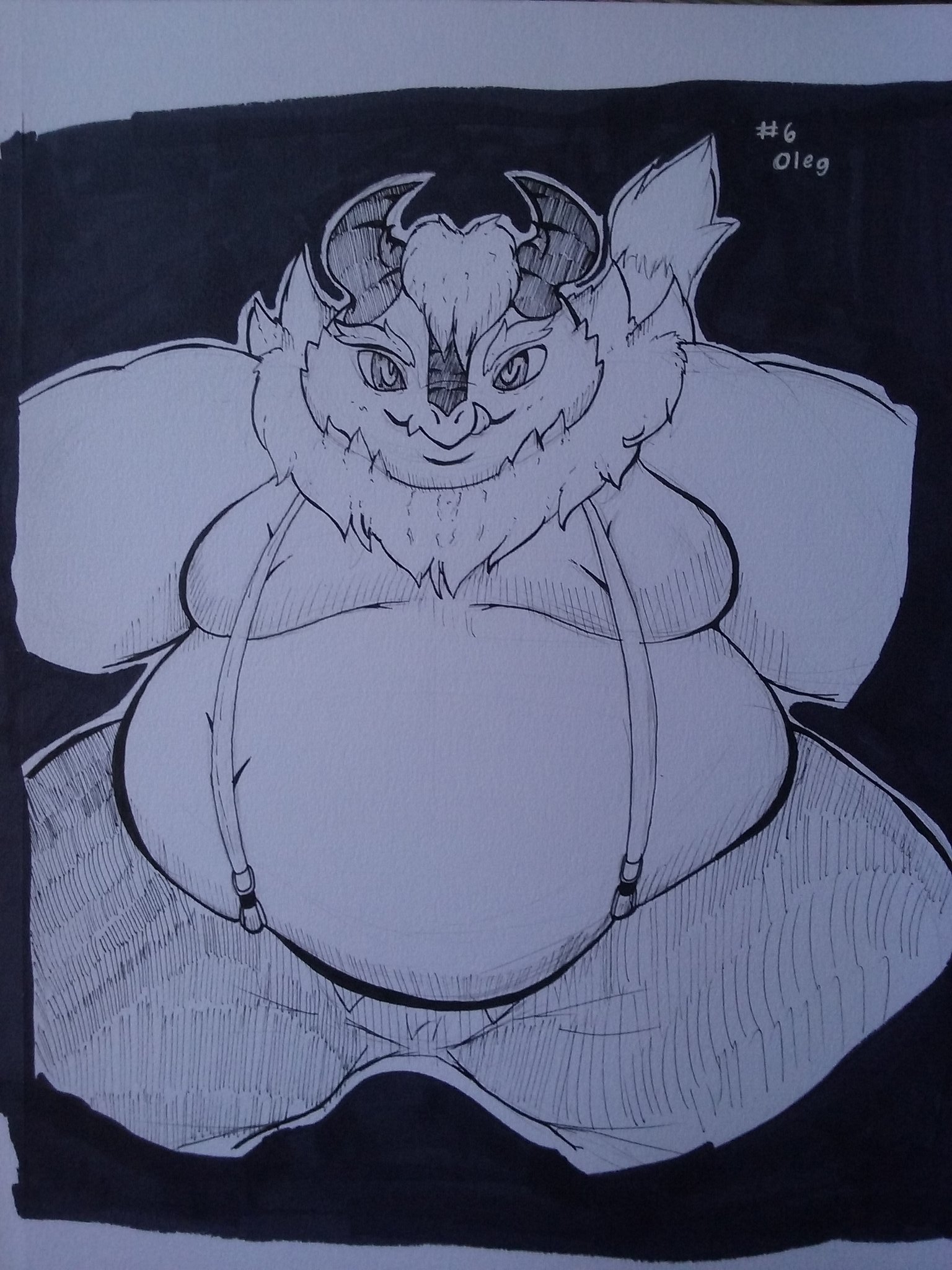 >>79878565>wide as fuck hips>fat belly that's visibly taut and swollen on the topHe's perfect.