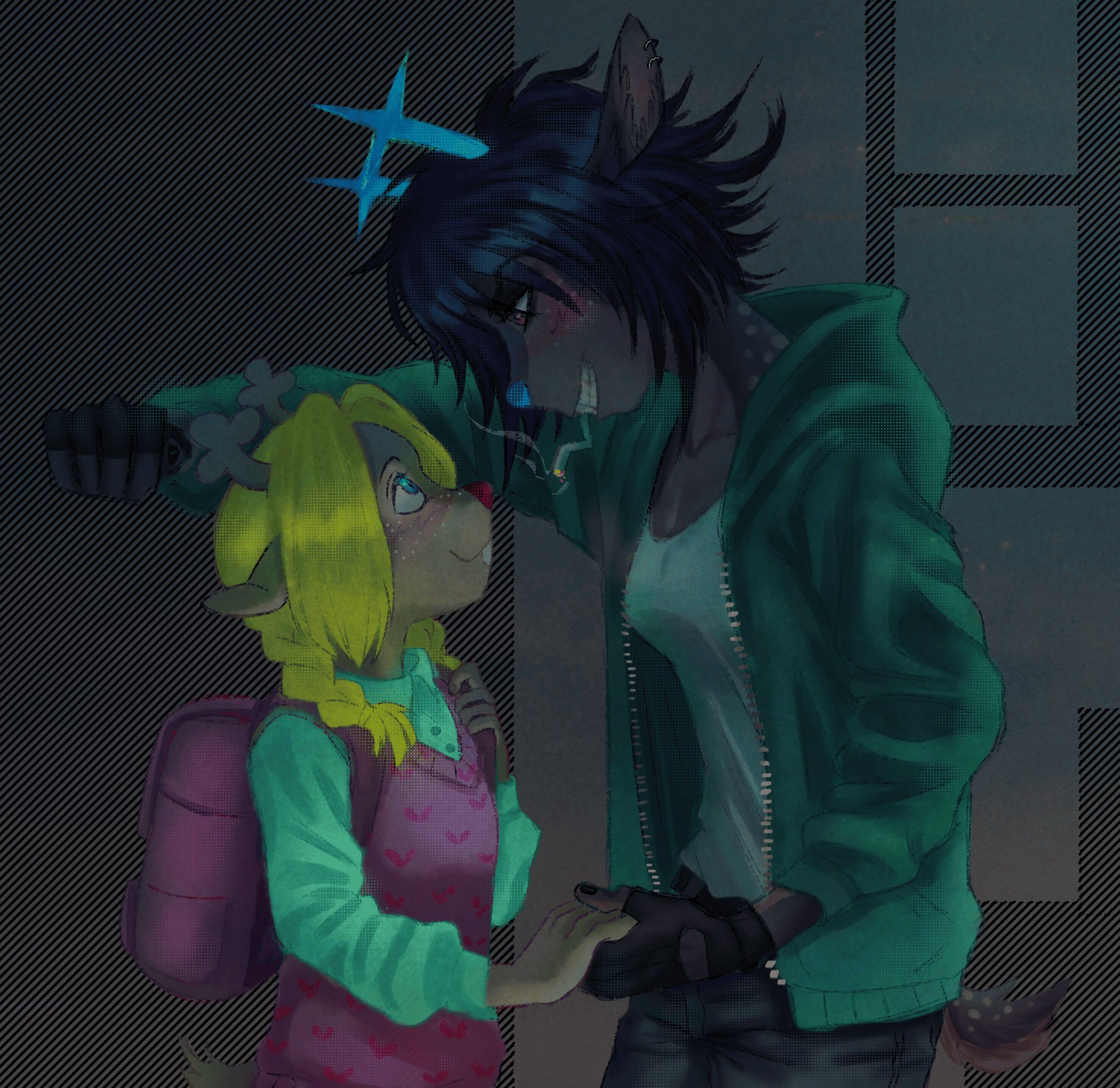 >>79885155Boy and doe, with one tending to and bandaging the other's self-harm cuts. Who is who is left to your discretion.