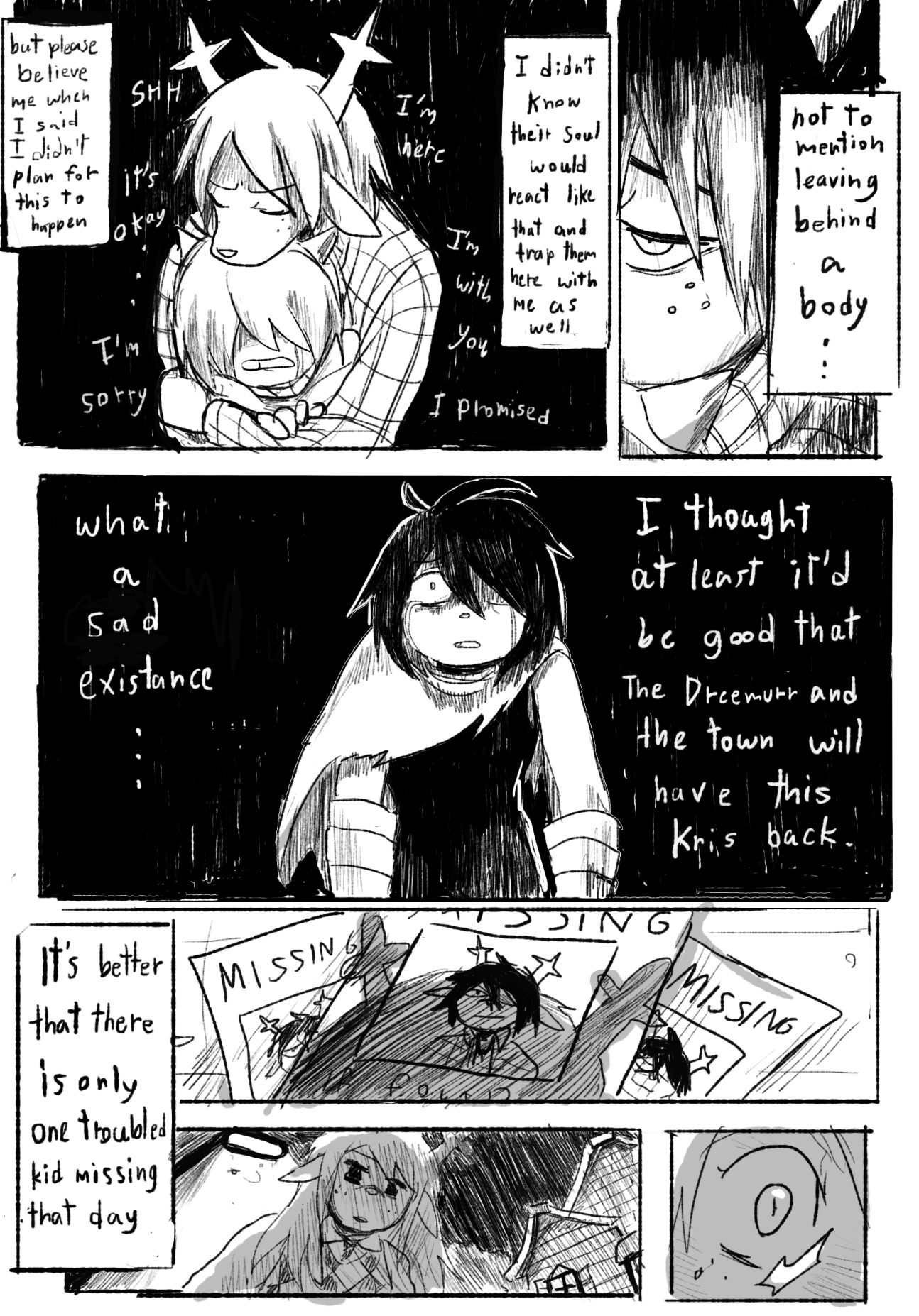 >>79885243>>79885258>>79885275the great compromise>Kris sees something scary in the woods, trips and gets a cut, and Dess takes them out for nice cream