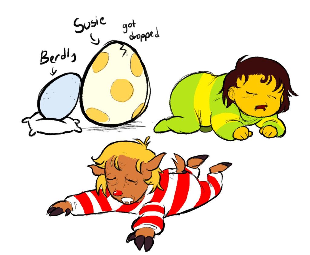 >>79885410I like to imagine Dess enjoys scaring Kris as a nostalgia thing. Kris acts just like their older brother, a simple relationship in her life she longs for in the face of ever-increasingly complex teenage relationships where her relationship with Asriel is uncertain. Plus it makes the does nostalgia-driven all the way down.