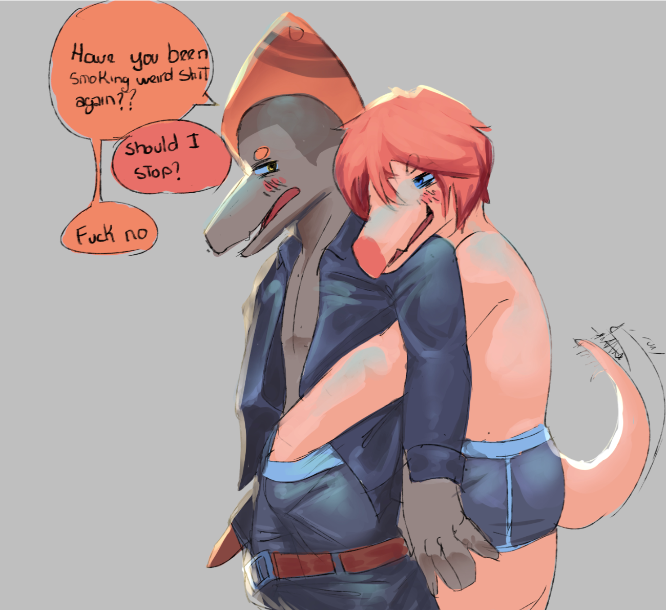 >>79898725>"The fuck you mean "naked?" I'm wearing a beanie and a choker">...>"Anyways, take your pants off"