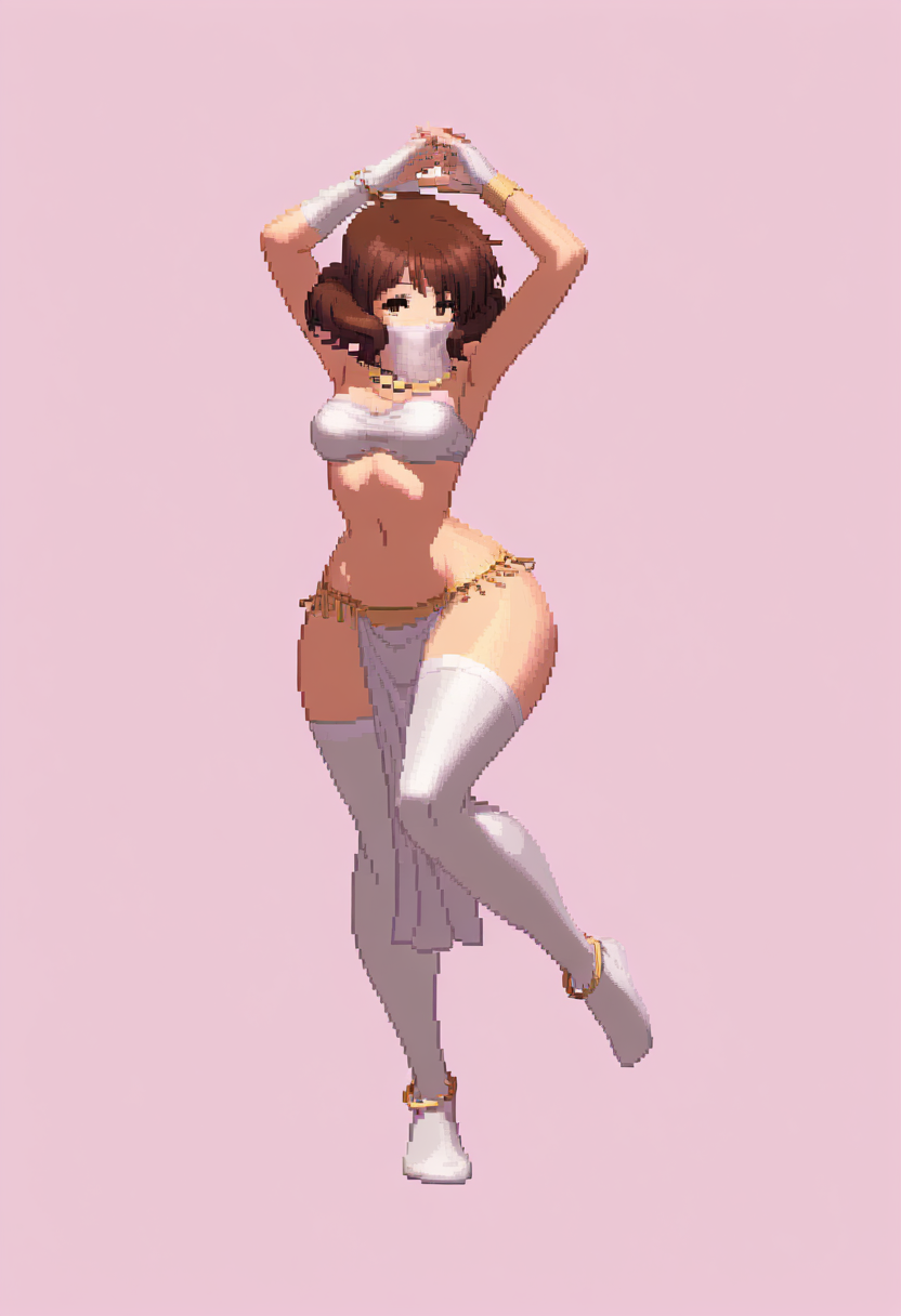 >>79897884Peach Panther from Kemono Friends, but in a harem girl outfit because >>79894976Pic related is her main outfit.