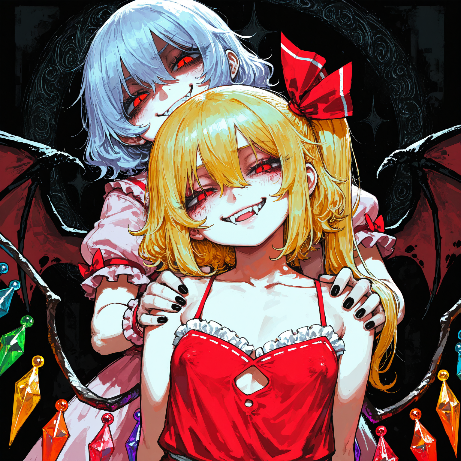 >>79898123their same outfit but i suppose i got what i was looking, or as close as i could get. it kept giving remilia, flandre's outfit.