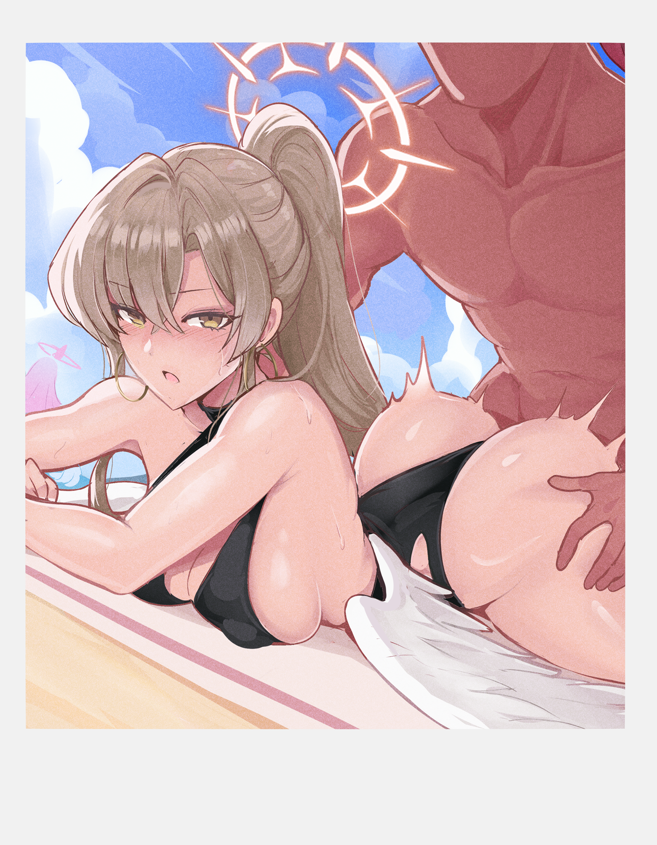 >>79964998Can't blame you... It'd be so good to tug Nagisa's swimsuit aside like that and really enjoy that soft, pillowy ass of hers so well trained by all her sitting. Would be so hot the way her wings would tremble, how she'd grip the sand and groan, all her complaints about being proper quite hollow when she'd be moaning with every thrust.