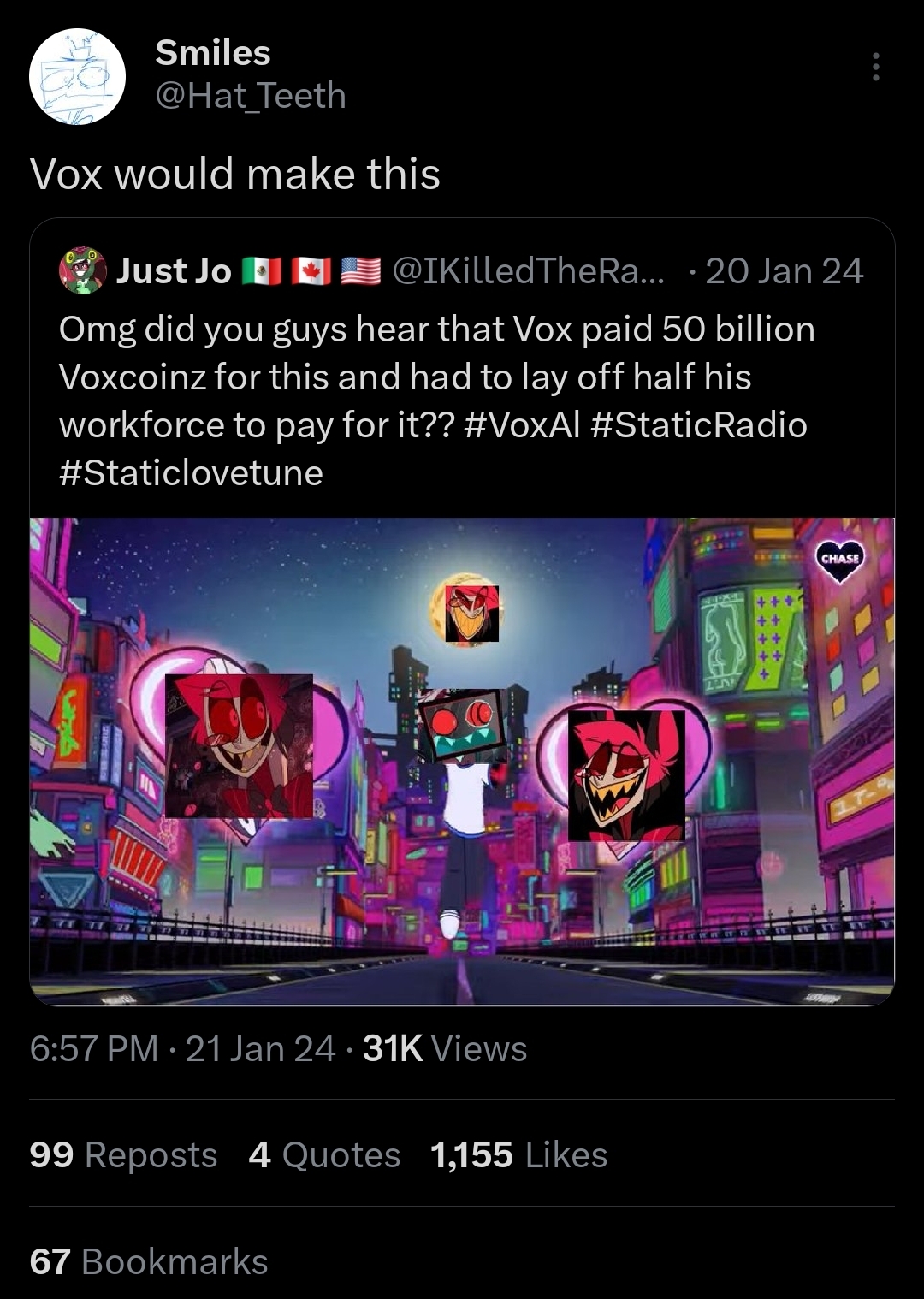 >>79971556>especially after the lore and characterization got absolutely fucked this season by shit writingThe characterization of Vox was great this season. Stop being a braindead gooner.
