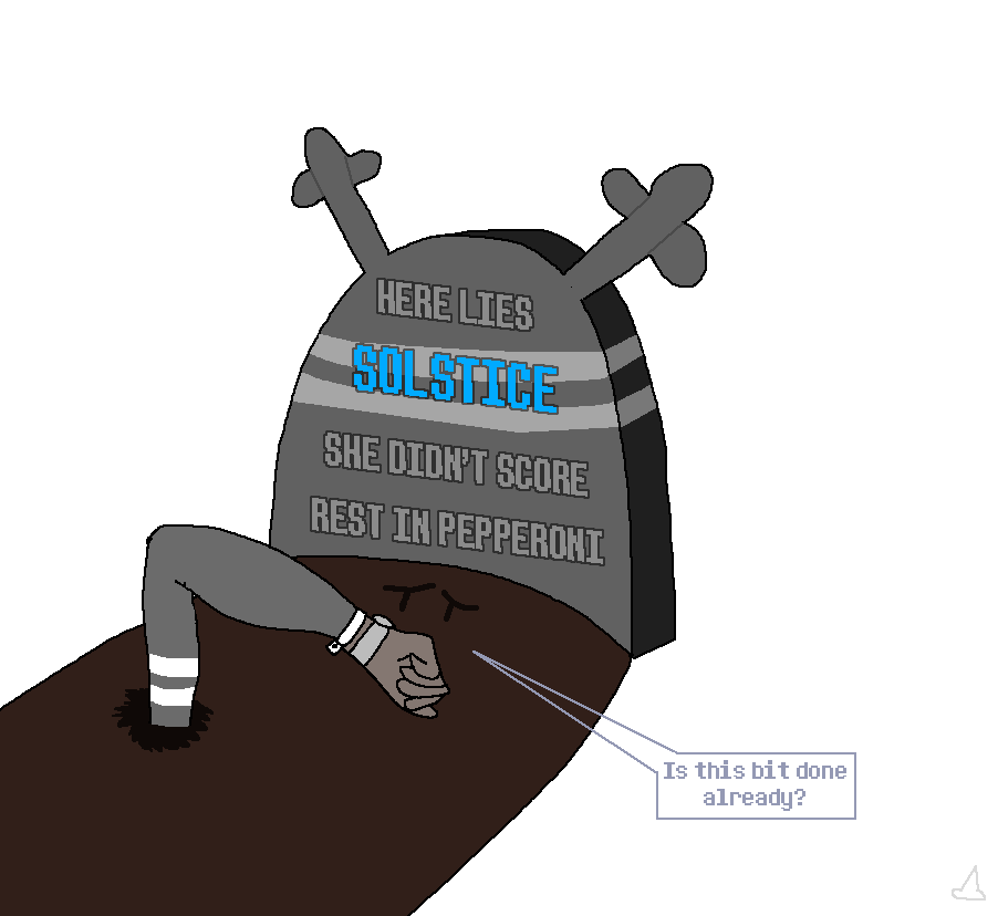 if i am not mistaken another anon drew what i think is sol?very niceit is acknowledged and it is a very very beautiful creation thank you!!!that said i am still at rock bottom motivation to draw, but i can throw around some ideasmy idea of solstice is that she is set in an au where dess disappears as usual, she lives out in the bunker for a while (like in all those comics you've seen anons make of her screwing around with gaster) while the doc makes the secret preps to have her transformed into the knightshe's uncooperative in the latter half of those procedures, so the doc decides to make a doe in the image of her sister to get attached to, only to torture/manipulate her to get dess under his thumblow and behold some incident occurs, and dess manages to avert her transformation into the knight and drags her new grey sis outside with her and reunites with her family.