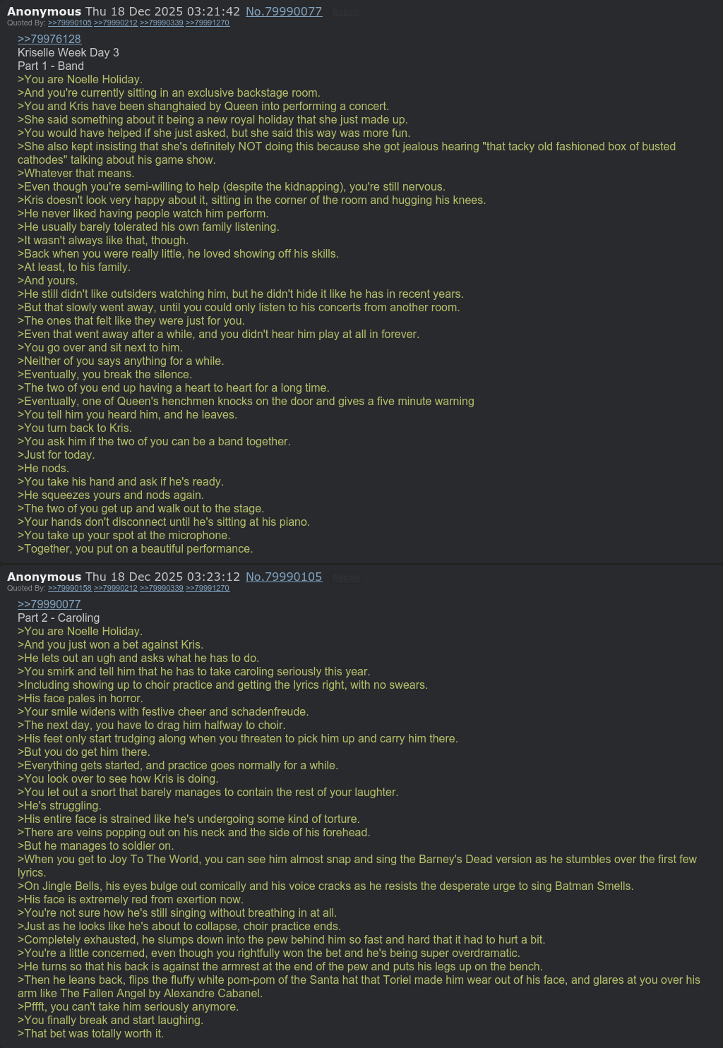 >>80014724Swap Kris as an Angel trying to guide swap Noelle from all her demonic impulses