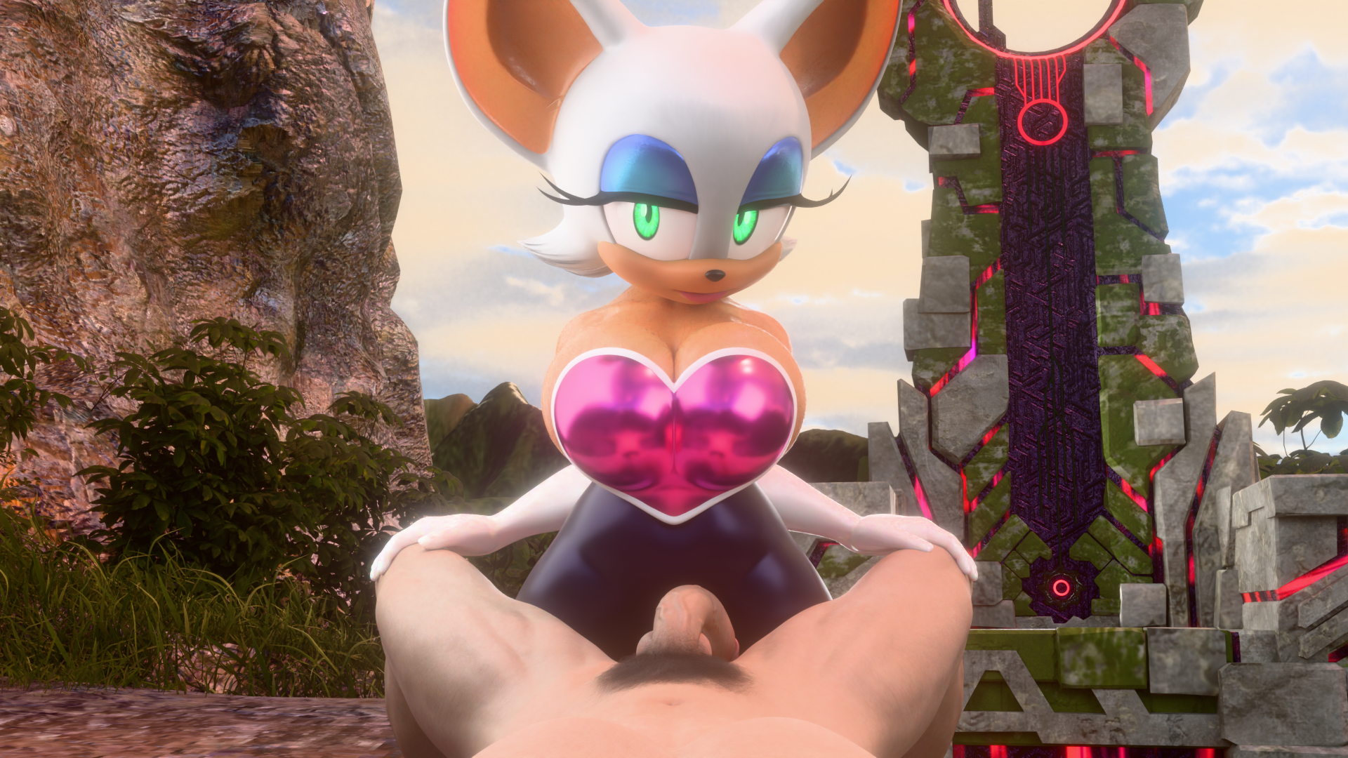 >The sight of Rouge makes his tensed balls give in and pulse out a thick gooey load all over his lap