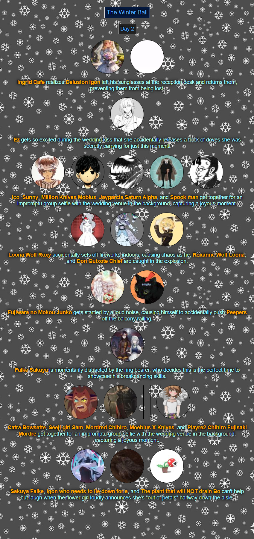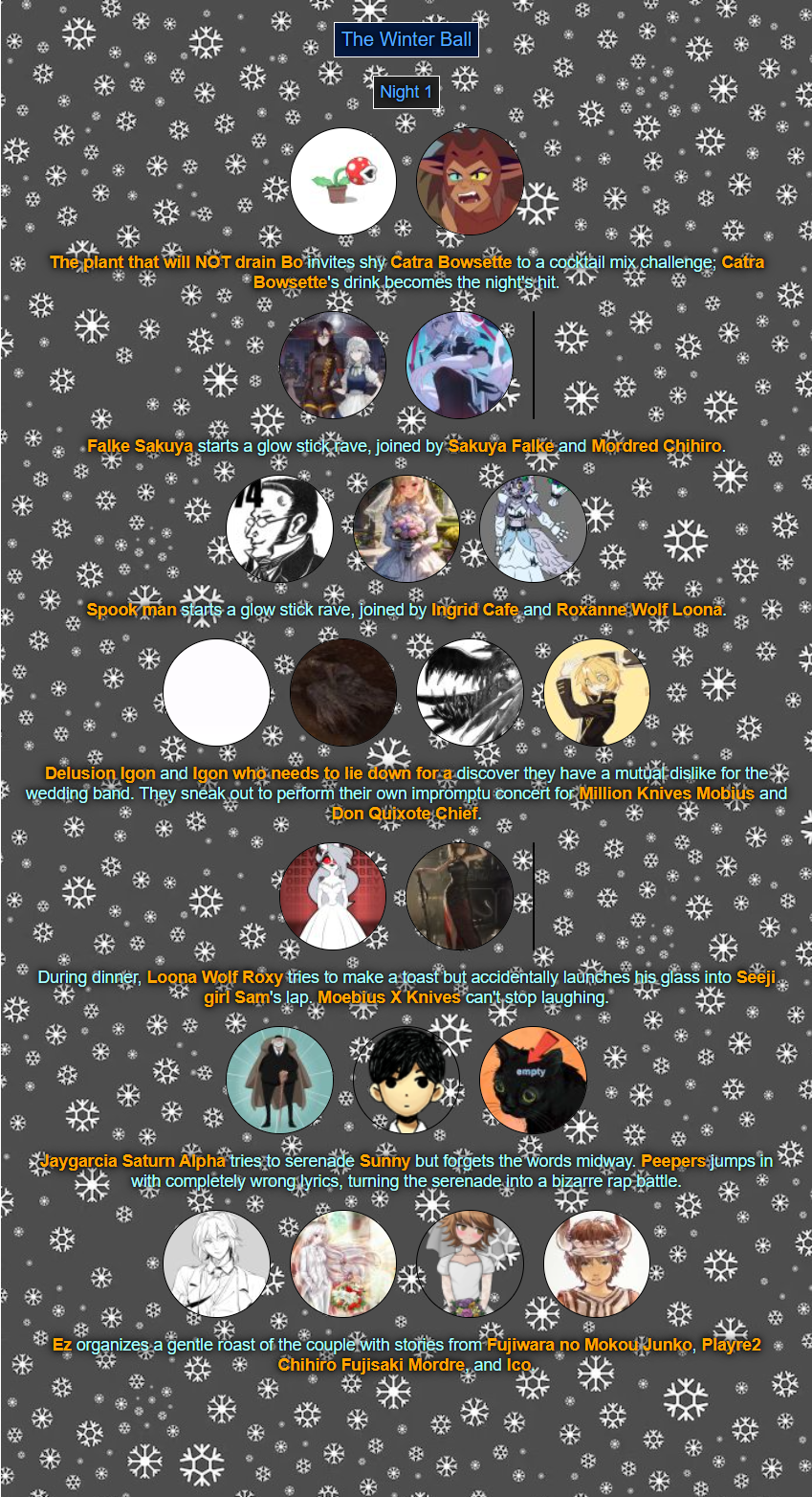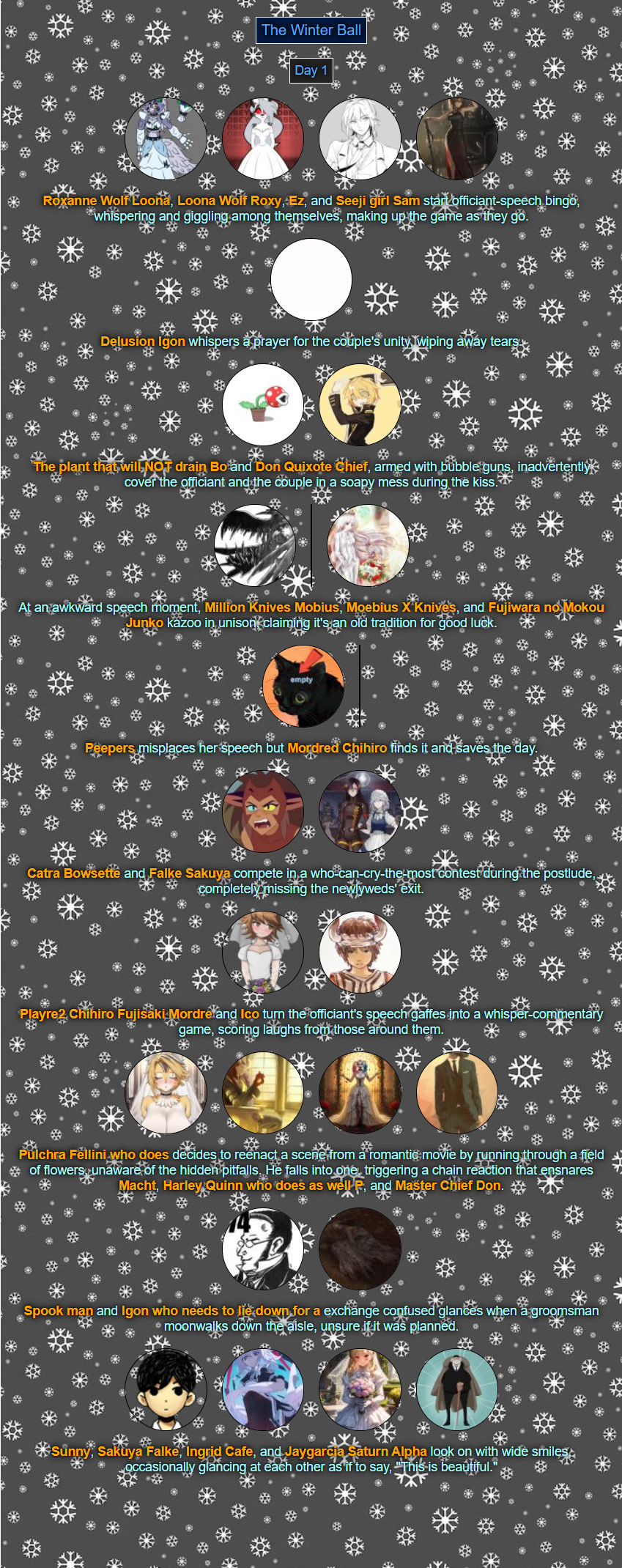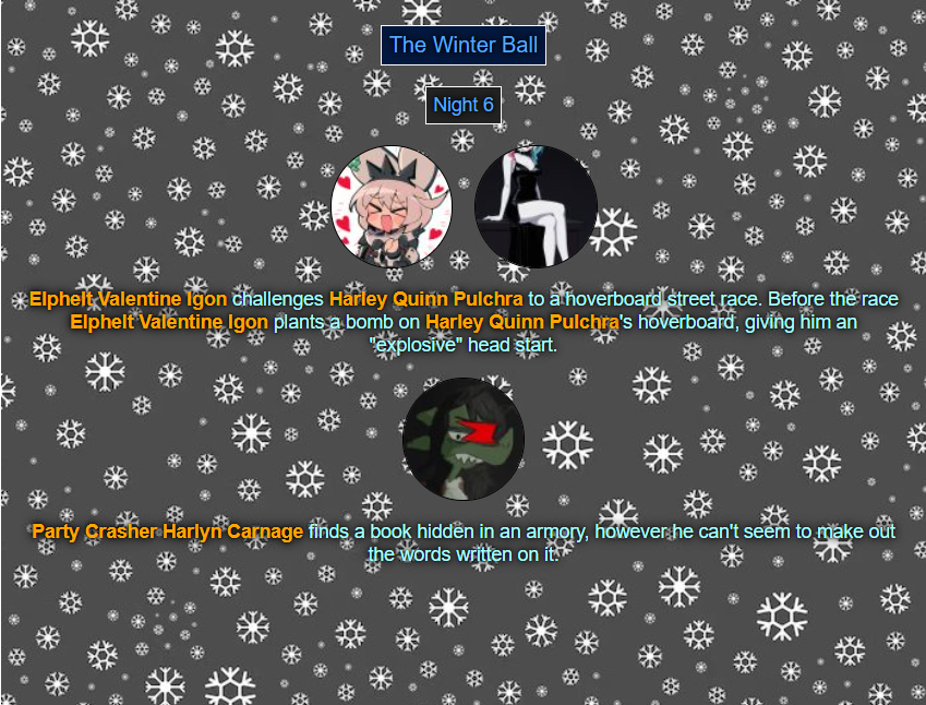 >>80054044Read'm and weep! Chaos has come to your winter ball! >>80054056You tell'm buddy.>>80054079See ya next week.