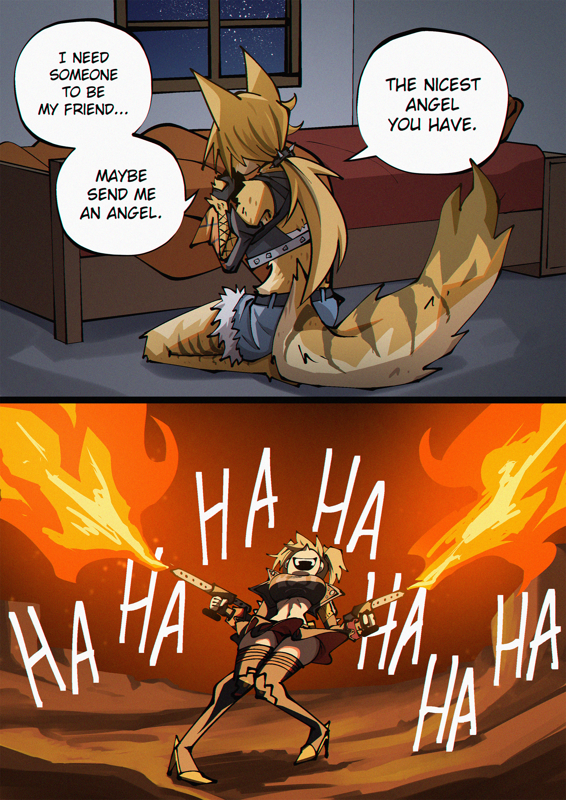 >>80055537Wouldn't know, I don't like you people touching me! >>80055547You know something Hammer Pants, ya right! I'm going to go throw a flaming table out the window!