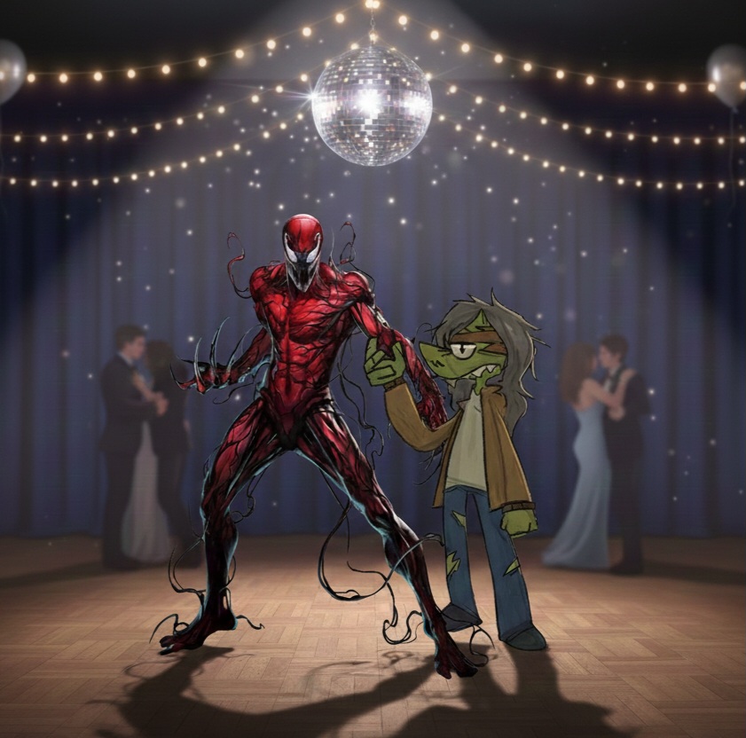 >>80055198>Everyone linked armed, dressed nice and smiling.>Carnage and Harlyn just walked in ready to throw hands.