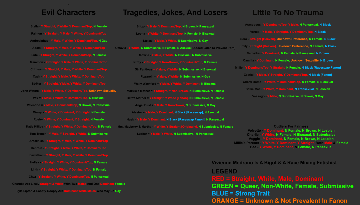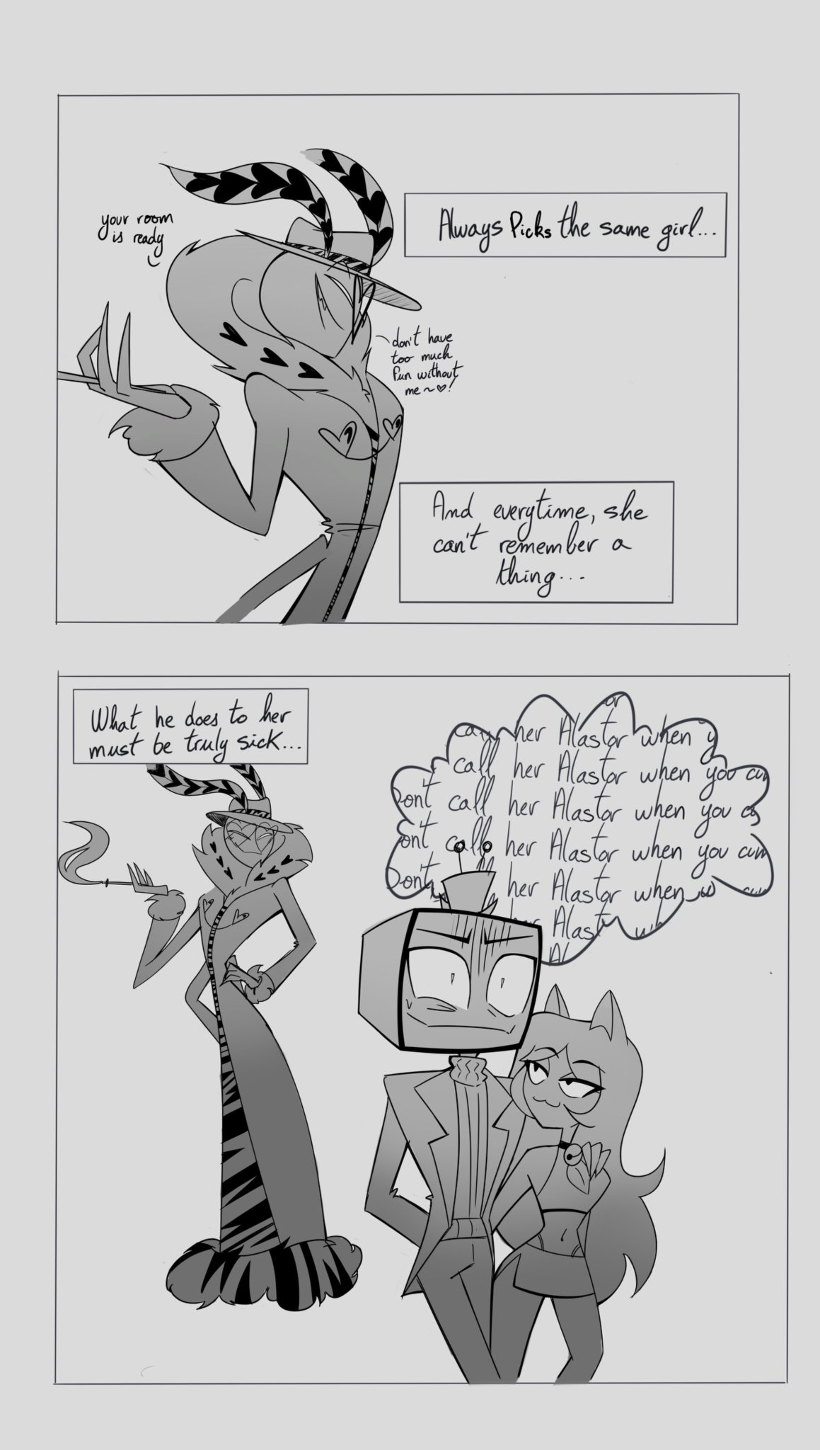 >>80140909The fuck can you think I'm a misandrist after this >>80140549? I'm repeating things that were canon from the Hunicast days. Alastor doesn't seem close to Zestal outside of respecting his status and kept Vox around because was entertaining more than likely.
