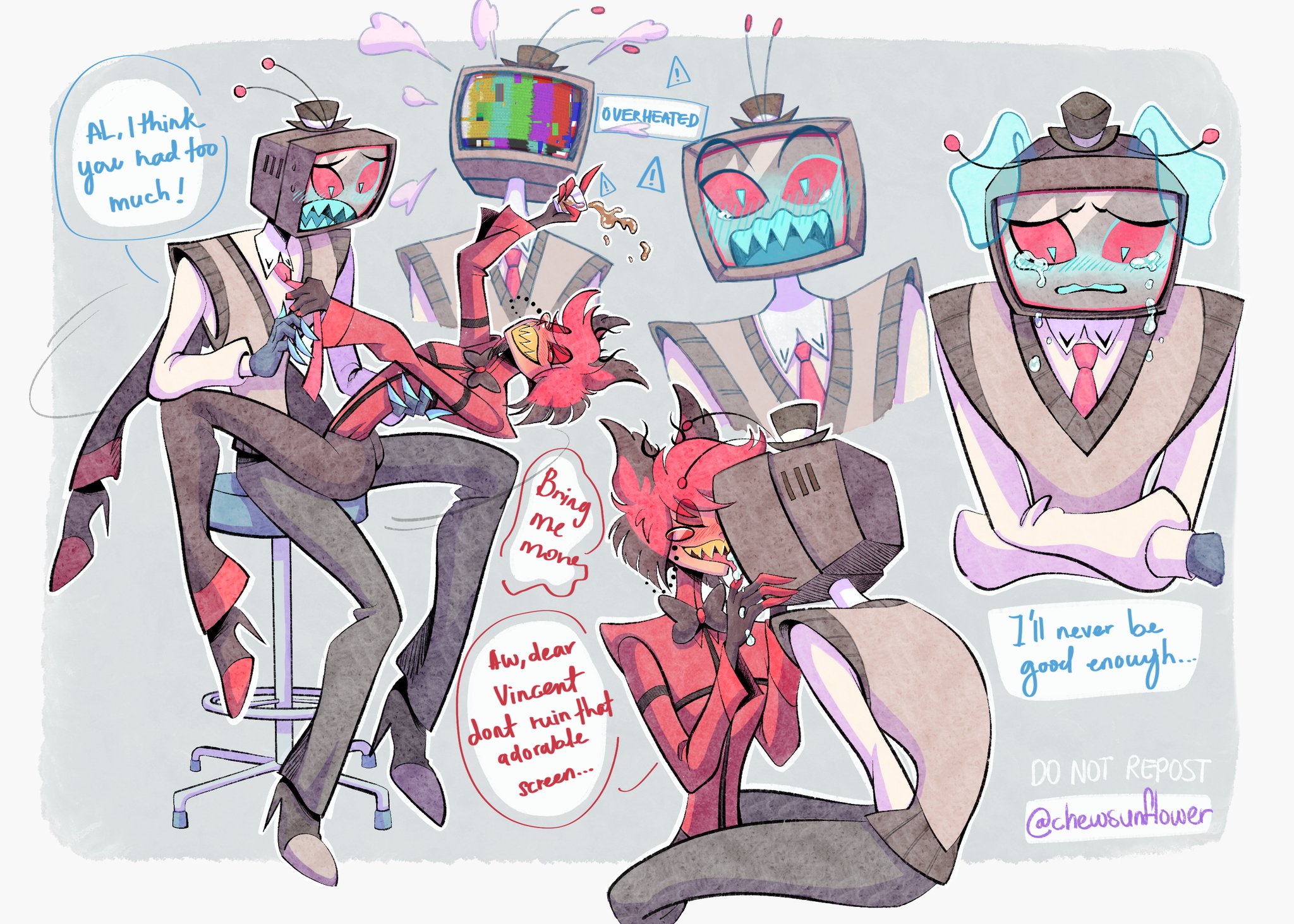 I like thinking of moments where Alastor showed softness towards Vincent over the years