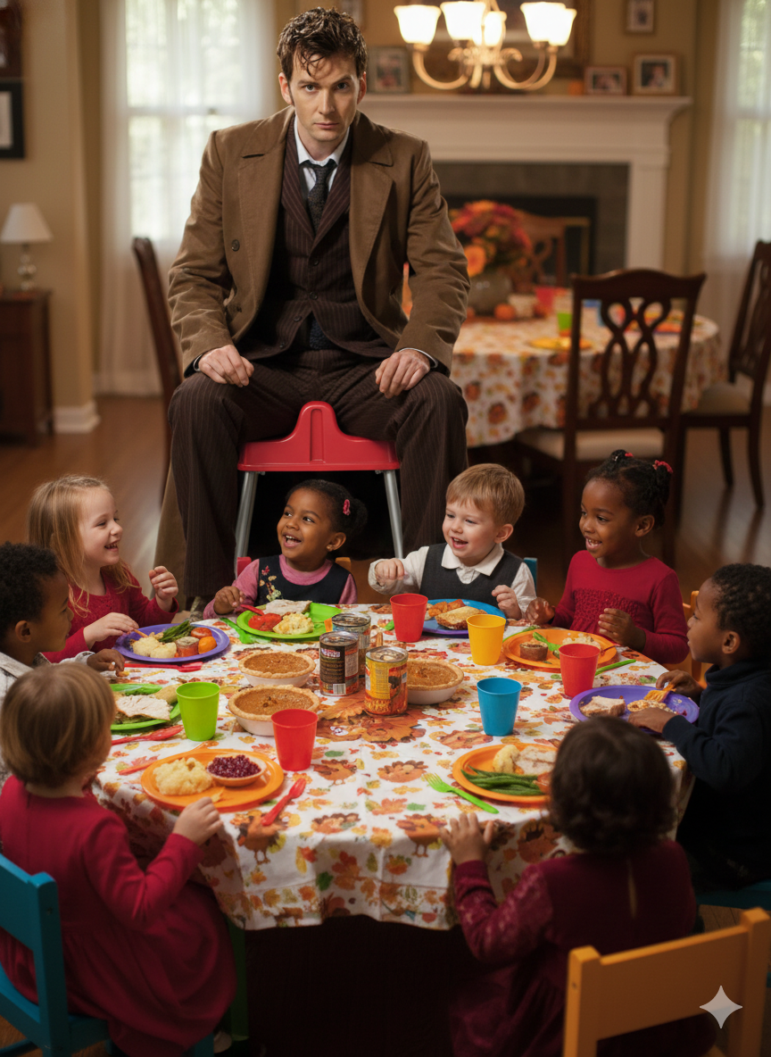 Eric is sitting at the kids table again...