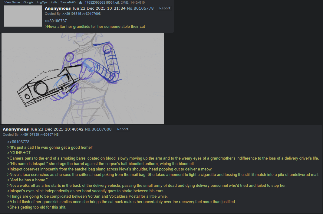 >>80155851i mean greens are great, probably most of them done by some of the remaining writters, but i mean a full on fanfic with actual character motivations and development would be fine y'know