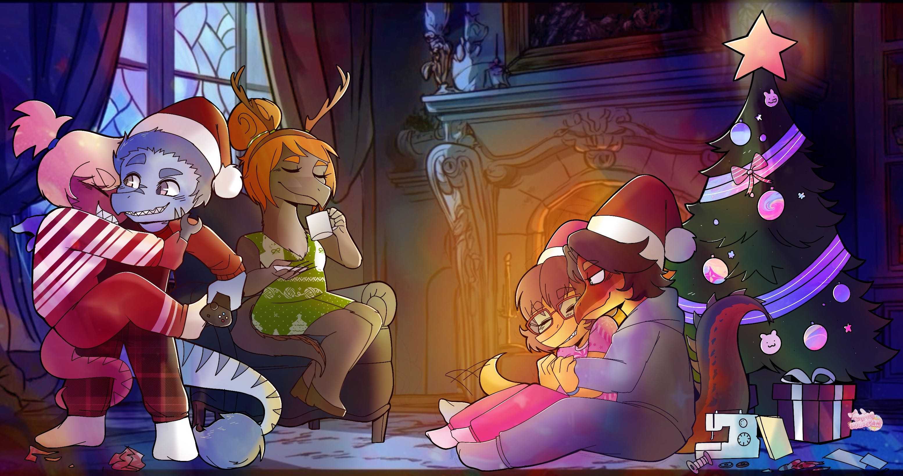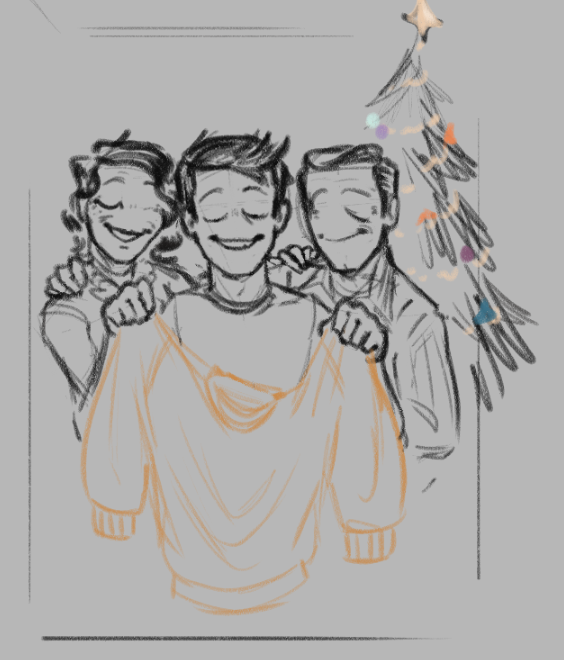 >>80162255Draw Anon, Naser and Naomi snuggled in front of a fireplace :)