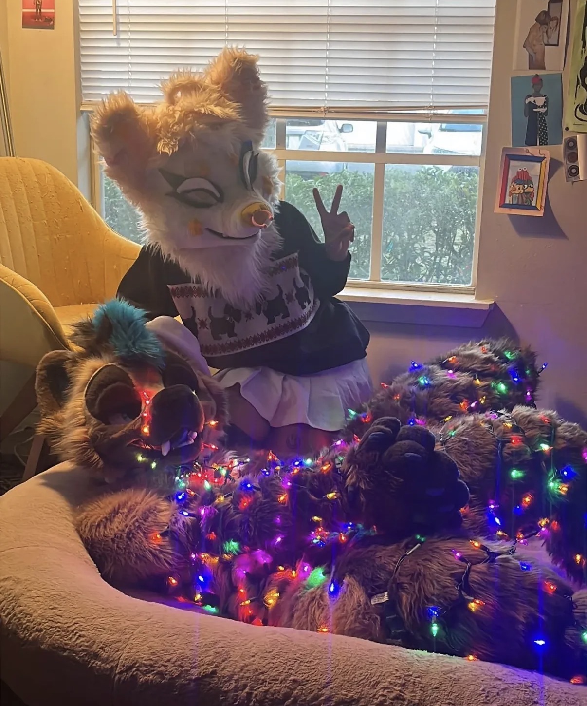 >>80158285the dont hug me im scared picture frame on the wall is so adorable and so is the creatura tangled in the christmas lights