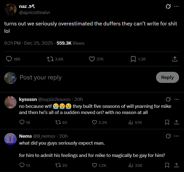 >>80177172They're going to react like byler shippers are acting now and accuse Viv of queerbaiting them when in reality they're the ones queerbaiting themselves with their delusions.