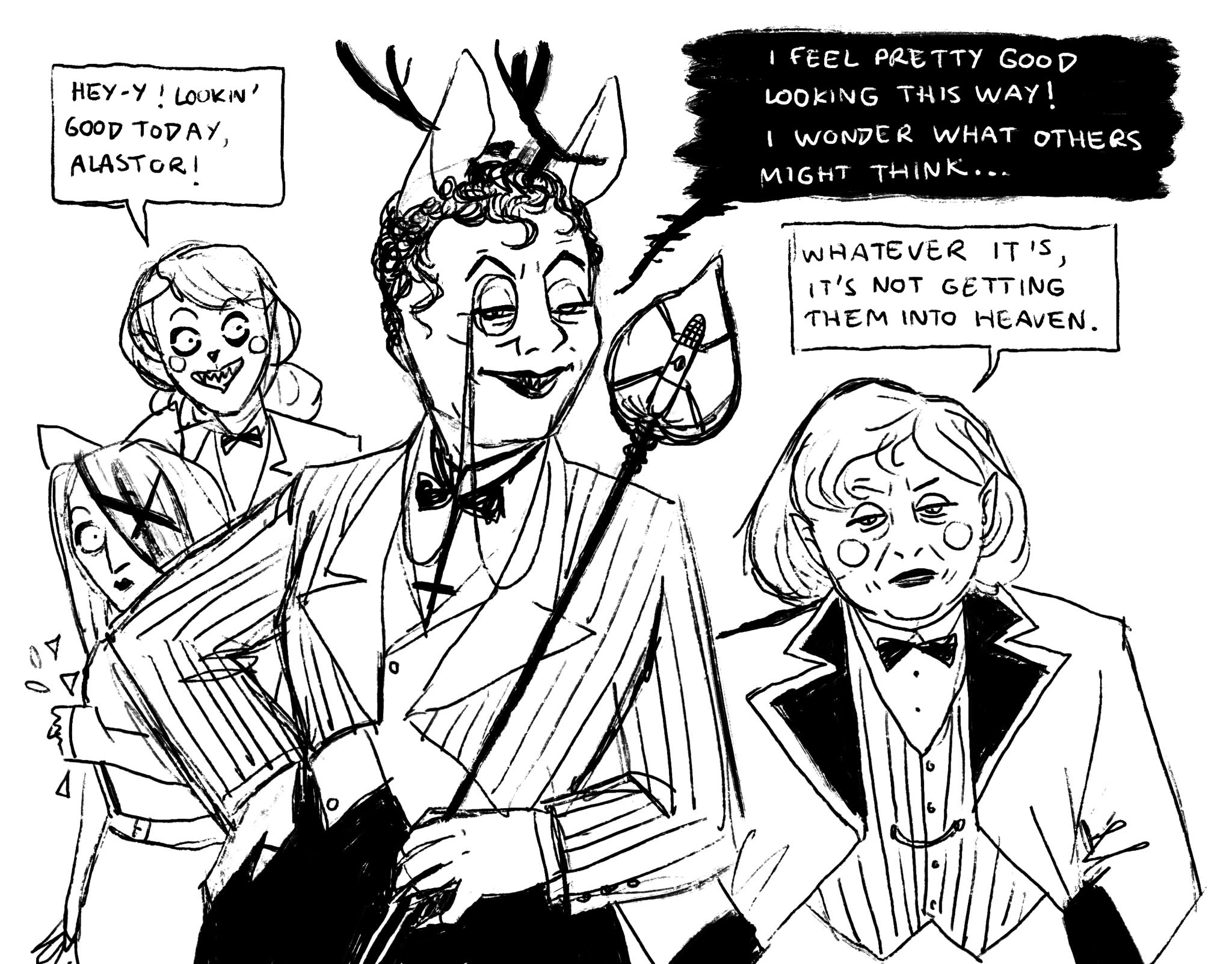 It is very funny that Viv only accidentally added some depth to Alastor's motivations for being evil by being forced to make him not white. Now you can chalk up his murders to being a result of persecution/having a chip on his shoulder as opposed to "he just kills cuz he's evil lmao"
