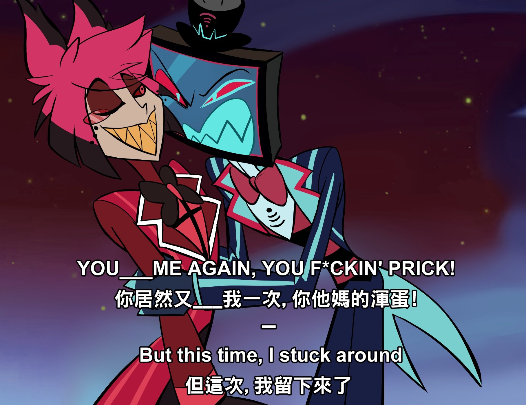 >>80180411>alastor was nothing but an asshole who used vox for entertainmentIs viv allergic to making her characters have more depth?>>80180742>>80180753>>80180771>>80180781I wouldn't mind if they blitzfizz radiostatic.