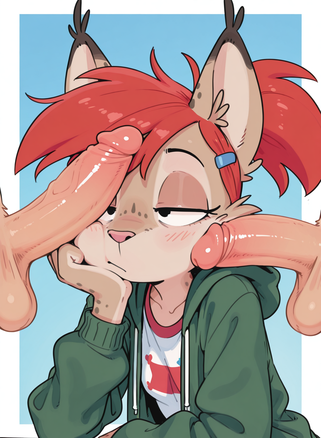 >>80187756Normal human Frankie walks in and yells WRF is going on here and who the fuck made a lynx version of herself as an imaginary friend. Regardless her lynx version is fostered there, lives in frankie's room, and possible self cest curiosities between the two start to form.