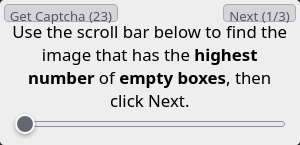 >>80186996>>80187045Are they giving everyone different captchas?? For me the shapes one was hard due to misleading wording but the dice is easy because they never ask anything but "how many boxes are empty".