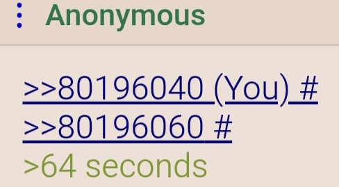 >>80196040>>80196060>64 secondsThe jokes write themselves