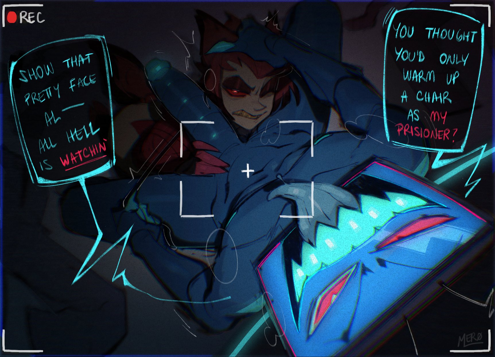 Vivziepop I need to know details about Vox's anatomy.Not his genitals, there are already thousands of interpretations of those out there (not to mention Vox is not for lewding). He's a mix of mechanical and organic parts, correct?His brain is probably a chip. What other organs does he have? He's seen drinking so he probably has a digestive tract and therefore also pees and poops? He produces blood, sweat and tears, but are they real or just a projection on his screen? Could you poke him in the eye or is it behind glass? His tongue can leave the screen area and he can drink fluids so is it a two-way display? He's a shark, but can he submerge in water or would he short circuit? I theorize the important part that has to stay intact are his antennas, why would a smart tv need aerials? Does he have a remote control? Can you browse internet on him? Can he play CDs? VHS? Betamax? Does he have a usb slot? Does he display a screensaver when he goes to sleep? He's seen impersonating other people, can he change his face to be anything at all? Would he be warm or cold to the touch? Can he overheat? If someone hacks him and he gets a virus, can he take antibiotics to get rid of it? Can he grow a beard or any hair? If the internet is disconnected, does he become a "dumb" tv? What's his operating system? Does he have one? How does he upgrade? Does he need to charge? If his screen is cracked, does it hurt him? Does he need a screen replacement or does it heal on its own?I need answers Vivienne I can't go on like this