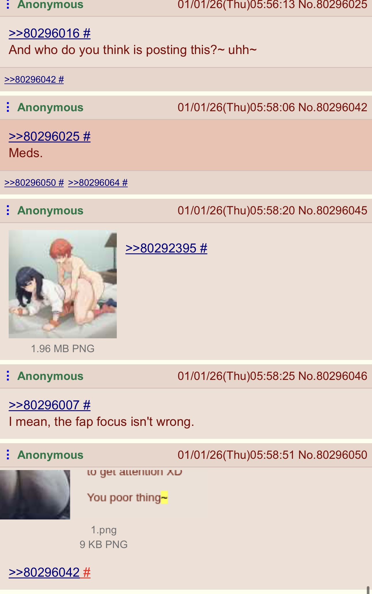 >>80296641You read my post~Also I respect that. Tbh I hope you two fuck soon. Like genuinely get laid.