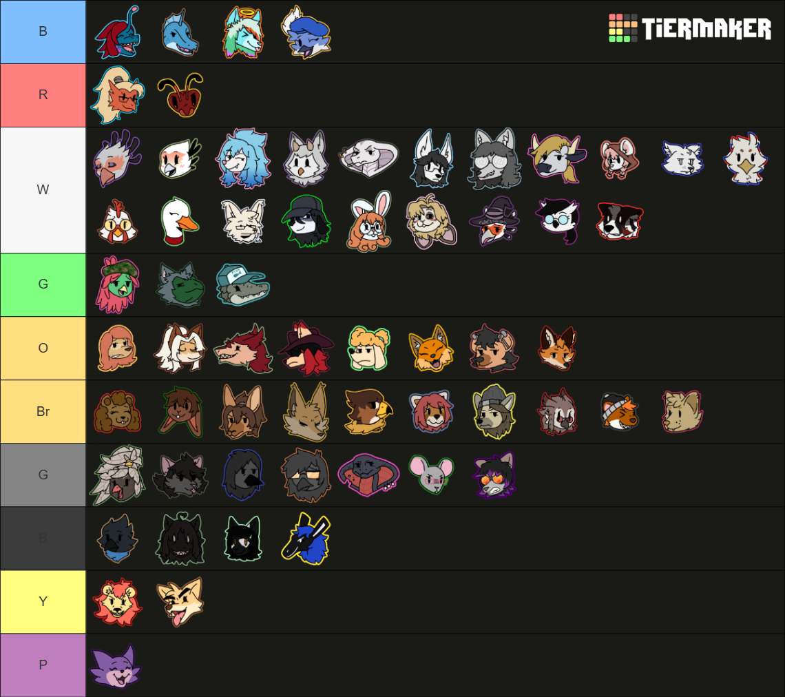 >>80323542(B) blowjob Queen's(R) rapists(W) waifur material(G) goblins (O) ornery(Br) breadwinners (or brats?)(G) gold diggers( ) zwarudo(Y) yaoi-bait(P) ourple-tier