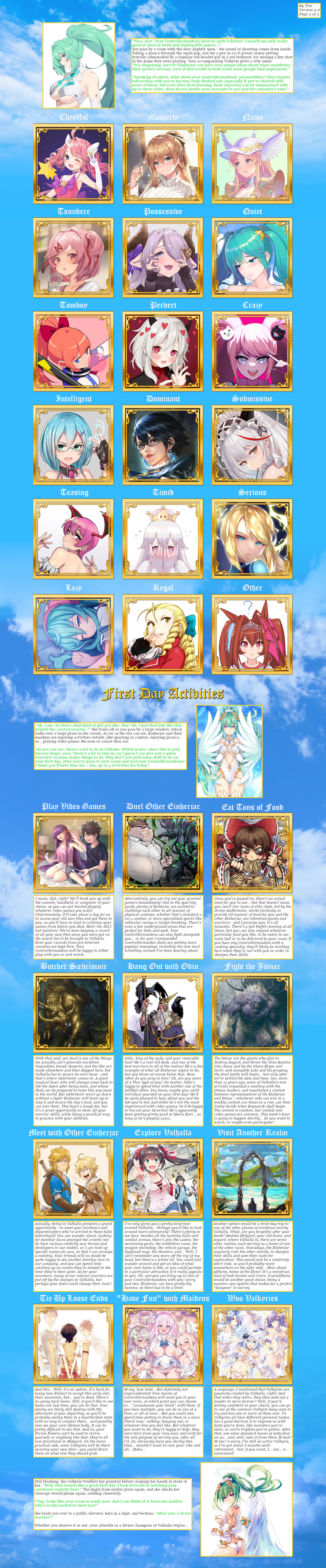 >>80400766>Nerd>Tsundere (3)>Art, Otaku (9)>Tall, Boyish, Eloquent, Clever, Bold/Shy (Secret)(Autism) (15)>R the First Chair Violinist (4 liked/2 disliked)>K the Favorite Sister (4 liked/1 disliked)>S the Tomboy Childhood Friend (3 liked/2 disliked)>Deflined Player (21)>Great Sex, Domestic Talent, Superhuman Body, Time Jump (28)>Living World (35)>Teachers, Employees, Friends, Antagonists (40)>Romance Add-on, Recruitment (47)>Ecchi (45) >Max World (53)>Open Wardrobe (55)>Unscripted (56)>Flexible>Influenced (57)>Full (61)>Inexperienced>Time skip, Mystery (64)>Save Transfer (69)Eh? No way to gain points!? Well, that was still a lot of fun!