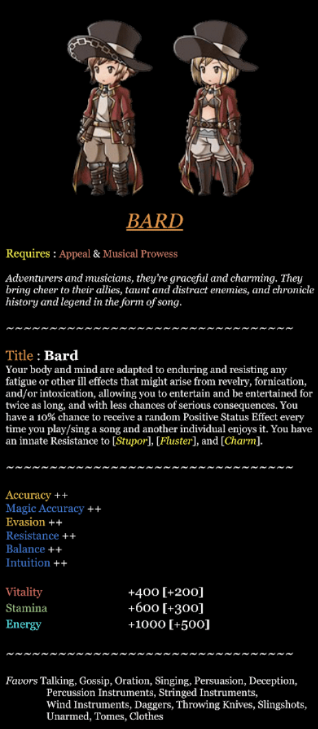 >>80414167>>80412937Bohemian you inflict a negative status for every positive and vis versa, and does a lot of weird things with weakness, including reflecting things back on you if you attack a weakness. Actually would pair well with sorcerer.