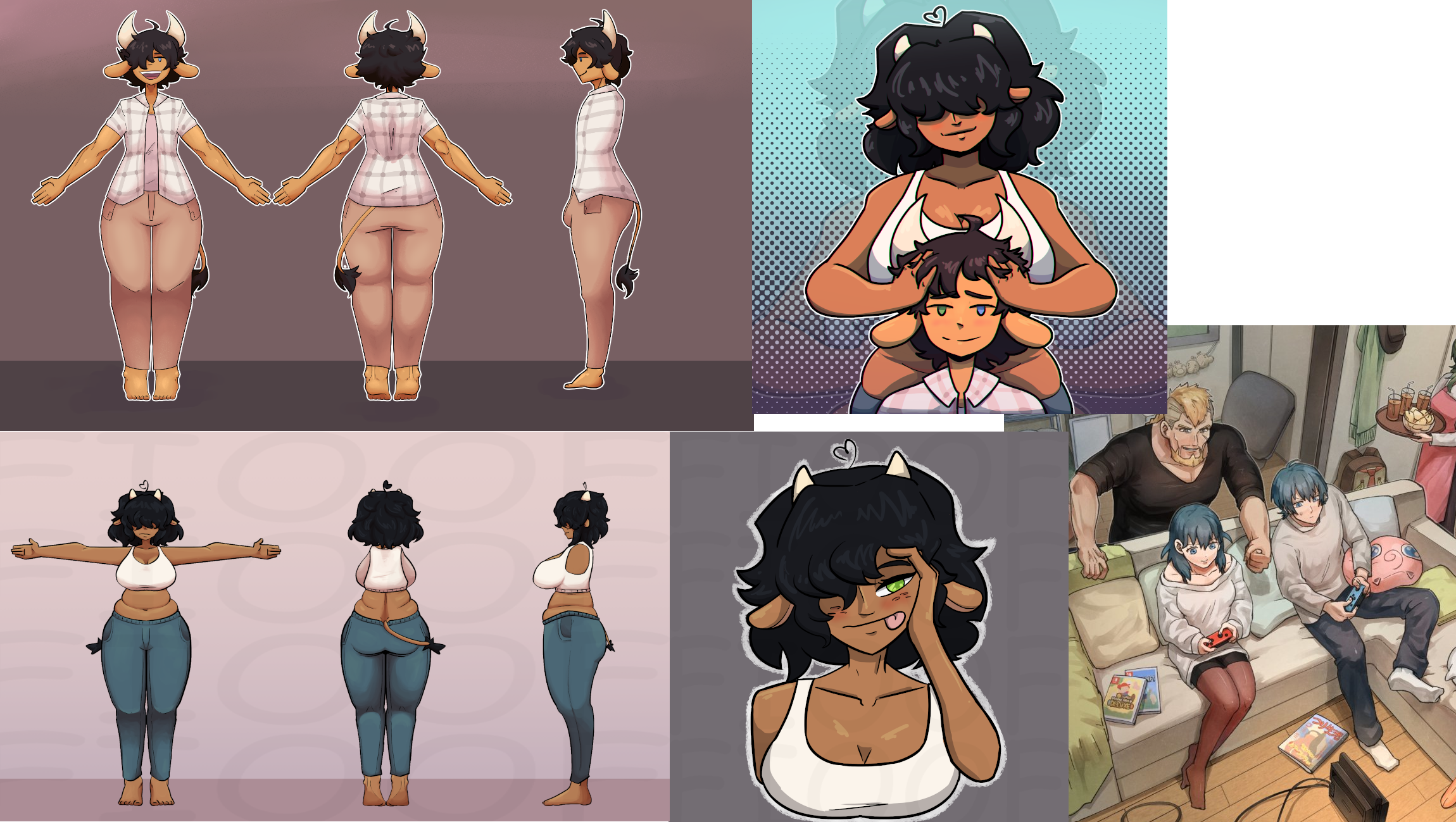 Requesting my characters Momma Kami and her adult son Yukio playing video games of some kind on A couch. Console of your choice. Kami getting very competitive while Yukio is A bit meek-ish but trying to match her energy. For reference, Kami is 6ft 3 in tall while Yukio is only 5ft 10in tall(not including horns).