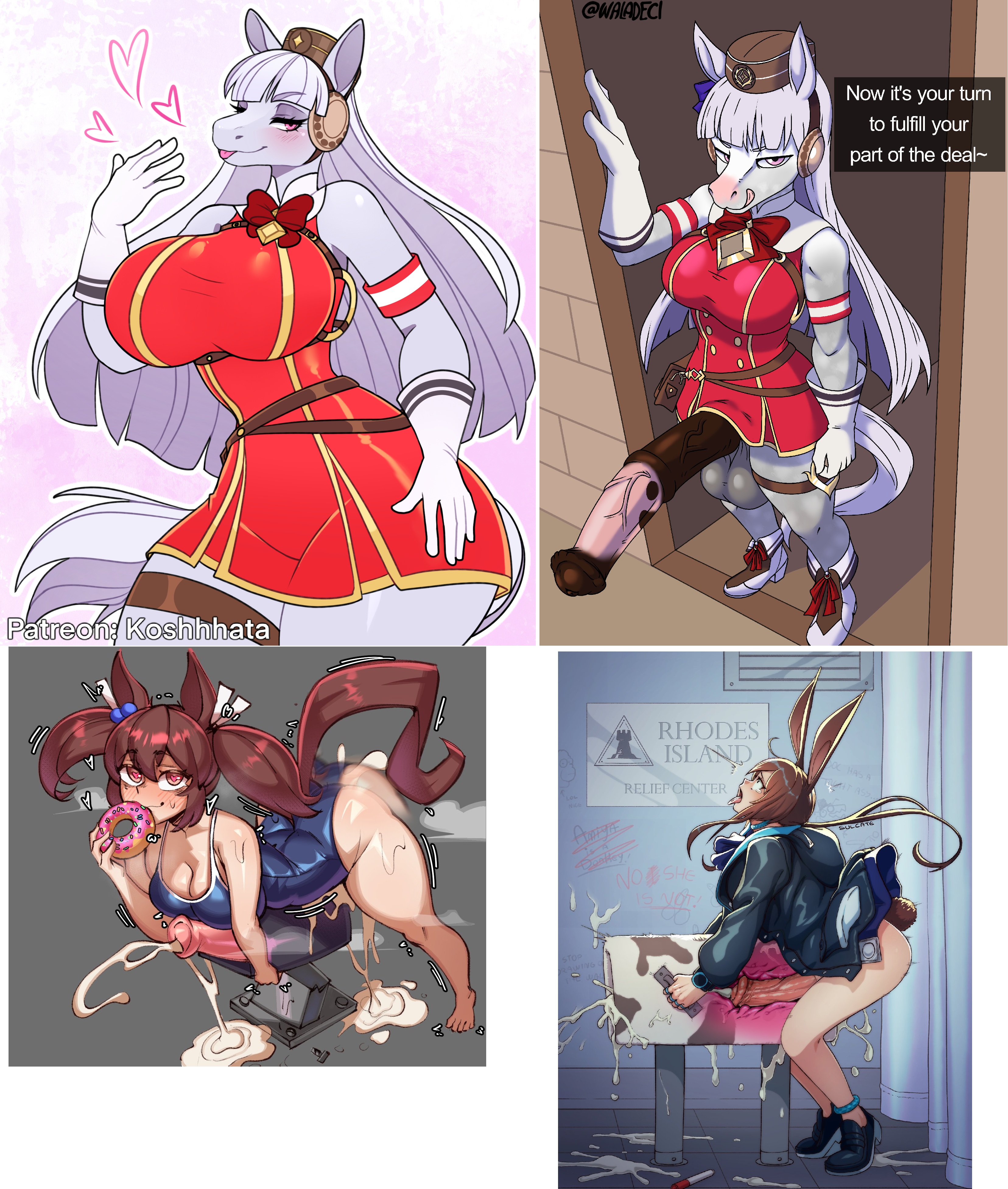 Requesting a fully horse-ified futa Gold Ship from Umamusume, fucking a breeding mount. Cum is highly appreciated