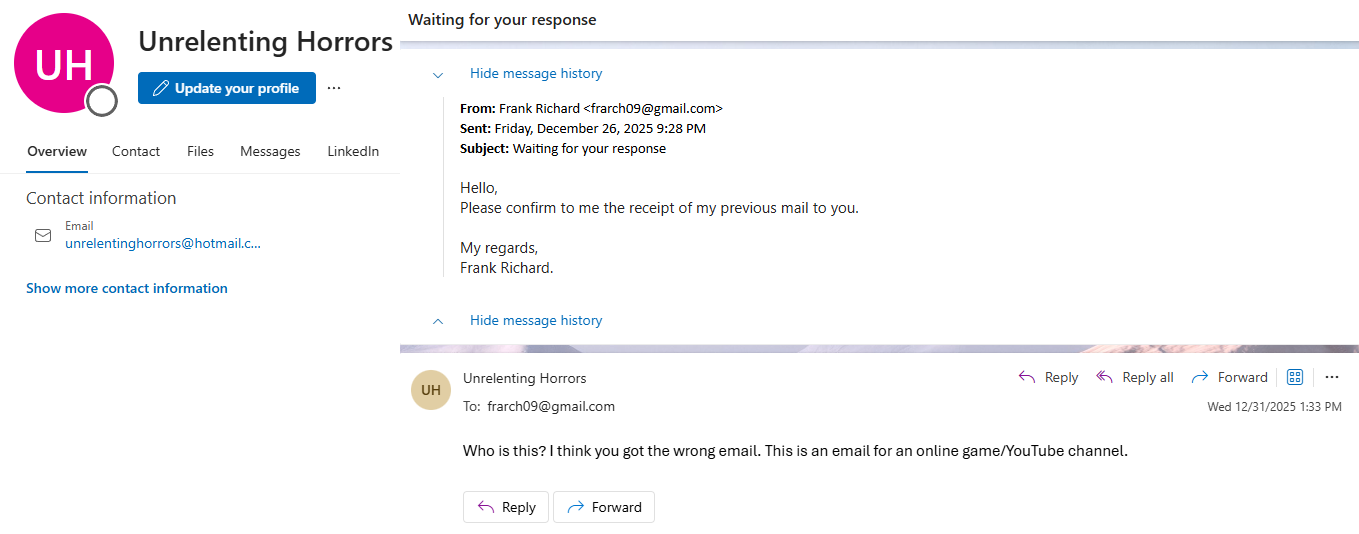 Email: unrelentinghorrors@hotmail.comChannel: youtube.com/@unrelentinghorrors>WHAT IS IT?A mass collaborative project for /uh/ posters to make a unfiction channel.>HOW DOES IT WORK?Send a video to the above email and it should be reviewed within 2 days. Once approved, it will be uploaded to the channel.>RULES1. No gore, slurs, porn, shit that will get the channel/video taken down immediately.2. Try to keep submitted videos between a minute to thirty minutes.3. You can reference other projects, but try to be original