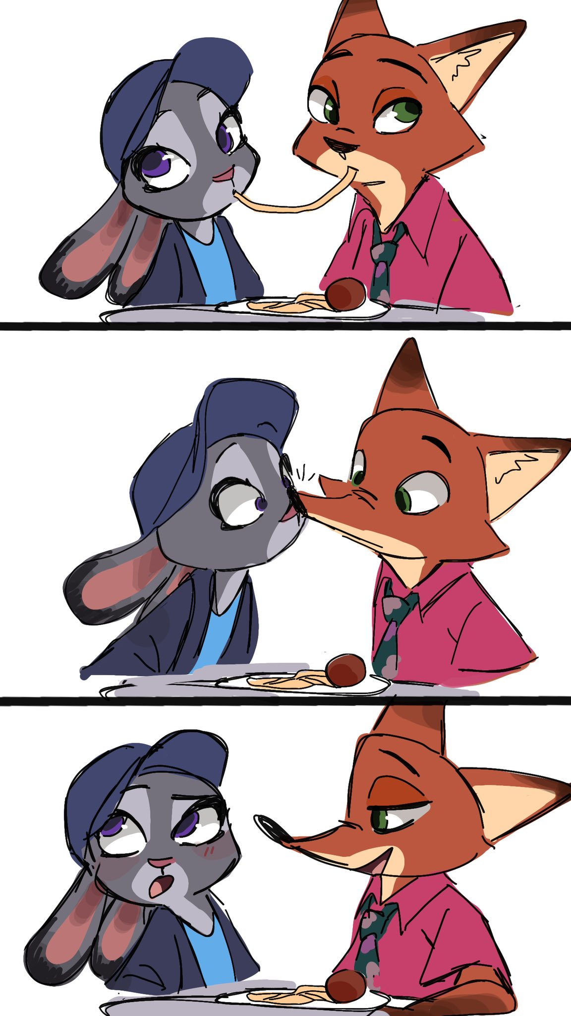 >>80434305If 3 gives us a kiss scene I want a fake out in the beginning where they go somewhere to eat before everything gets going. Judy gets pasta and Nick sneaks a bite. They end up almost kissing but break it off before it happens, Judy punching his arm saying the spaghetti is hers. The tease would be ok as long as a real kiss would be coming later.
