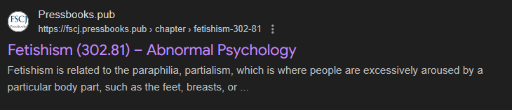 >>80468870>(DSM-5) 302.81>Trust the Basedence™, you boob-obsessed chud! (btw having fetishes is only bad if you're picrel, otherwise it's good)