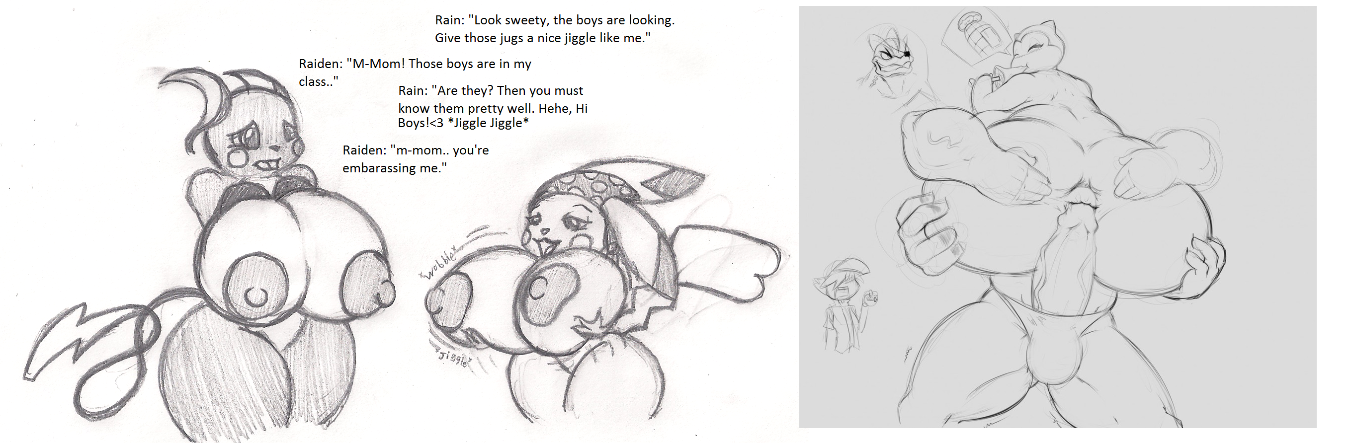 Requesting super extra thicc fusion of Rain (the shortstack pikachu) and the female snorlax