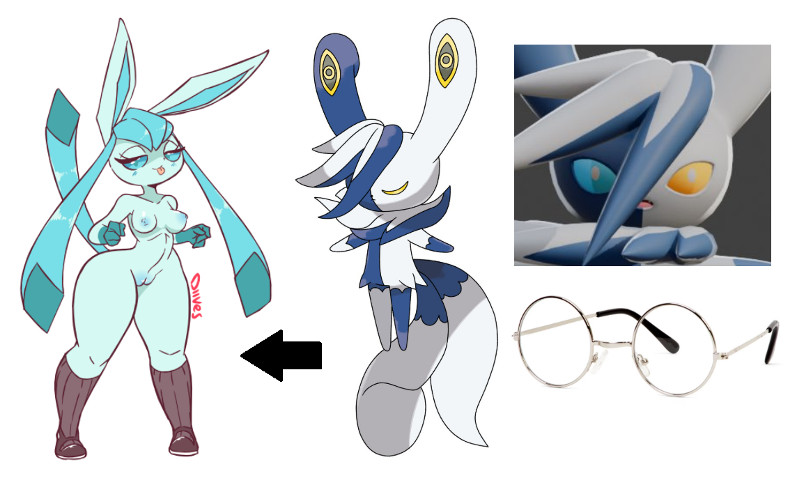 Requesting a humanoid meowstic with the body type on the left and glasses
