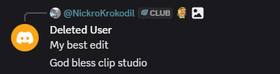 >>80506862One: I’m not that autistic about Clock, I like our conversations, I just find his identity denial funny.Two: Reports do jack shit.Three: Clock doesn’t use Discord one of the furry co-founders of Discord hates his guts.