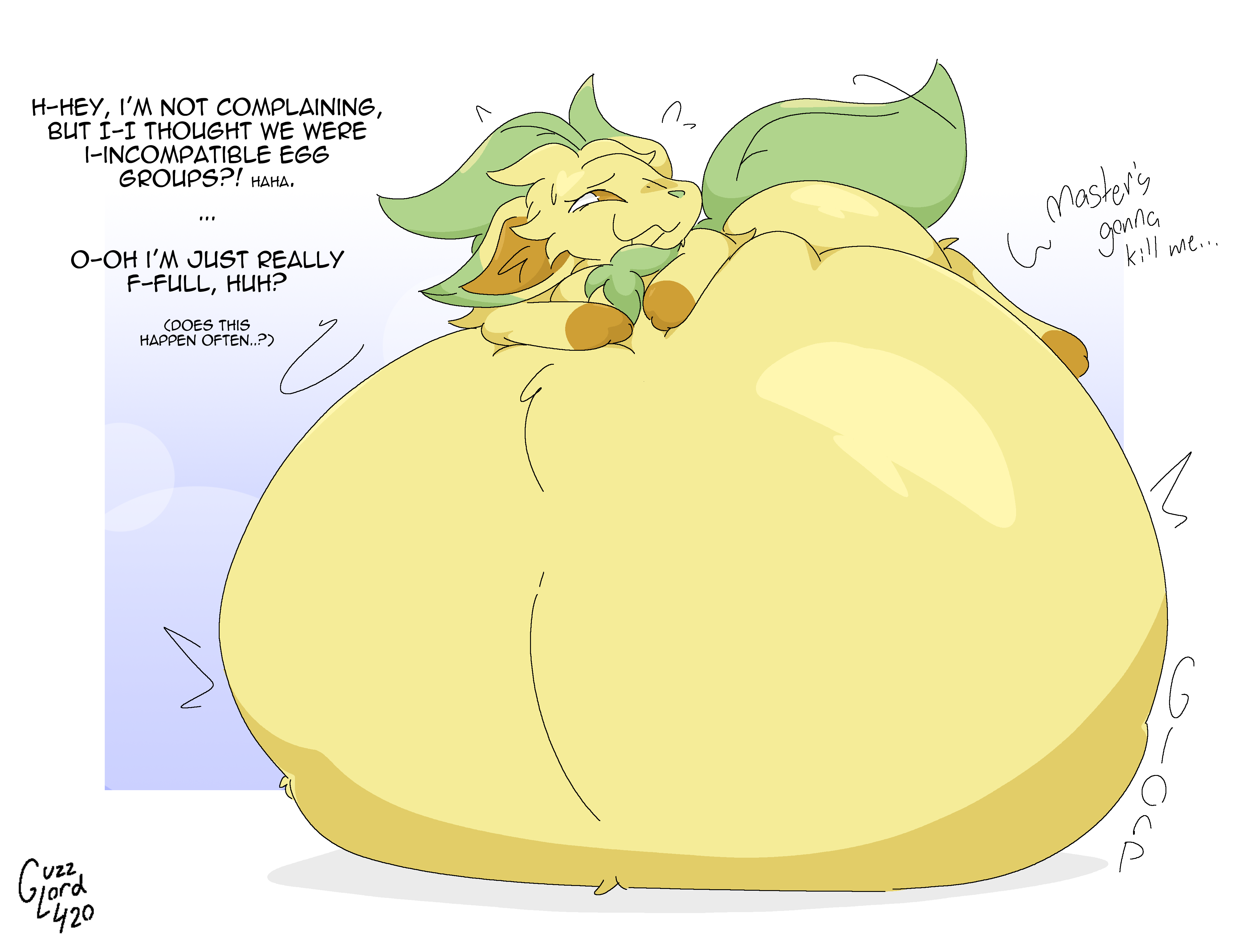 >>80503223Weird Idea I just came up with, gonna write a greentext about it, feel free to draw any part of it if you want >Munchlax is busy chowing down his/her favorite berries at a buffet, gulping down plates at a time!>He/She sees a massive jawbreaker, and swallows it whole, giving them a big ol' belly>suddenly a ticking sound comes outta nowhere, and Munchlax's belly is starting to feel warm>a trainer comes by, asking if anyone's seen her electrode>uh oh>Ka-BOOOM!!!>Luckily Munchlax's hide is tough; the explosion flung the poor electrode out in a fiery burp>it also turned Munchlax spherical, which is strange since normally only fire types retain such massive amounts of energy without extreme burning>unless...>The munchlax starts to glow, and the residual heat begins to solidify into fat as they evolve! >when the glow settles down, the newly evolved, super fat snorlax ends up taking up the entire room>and they're *still* spherical, except now it's fat instead of energy>the snorlax yawns. Maybe it'll find a way to burn this fat and become mobile again later...